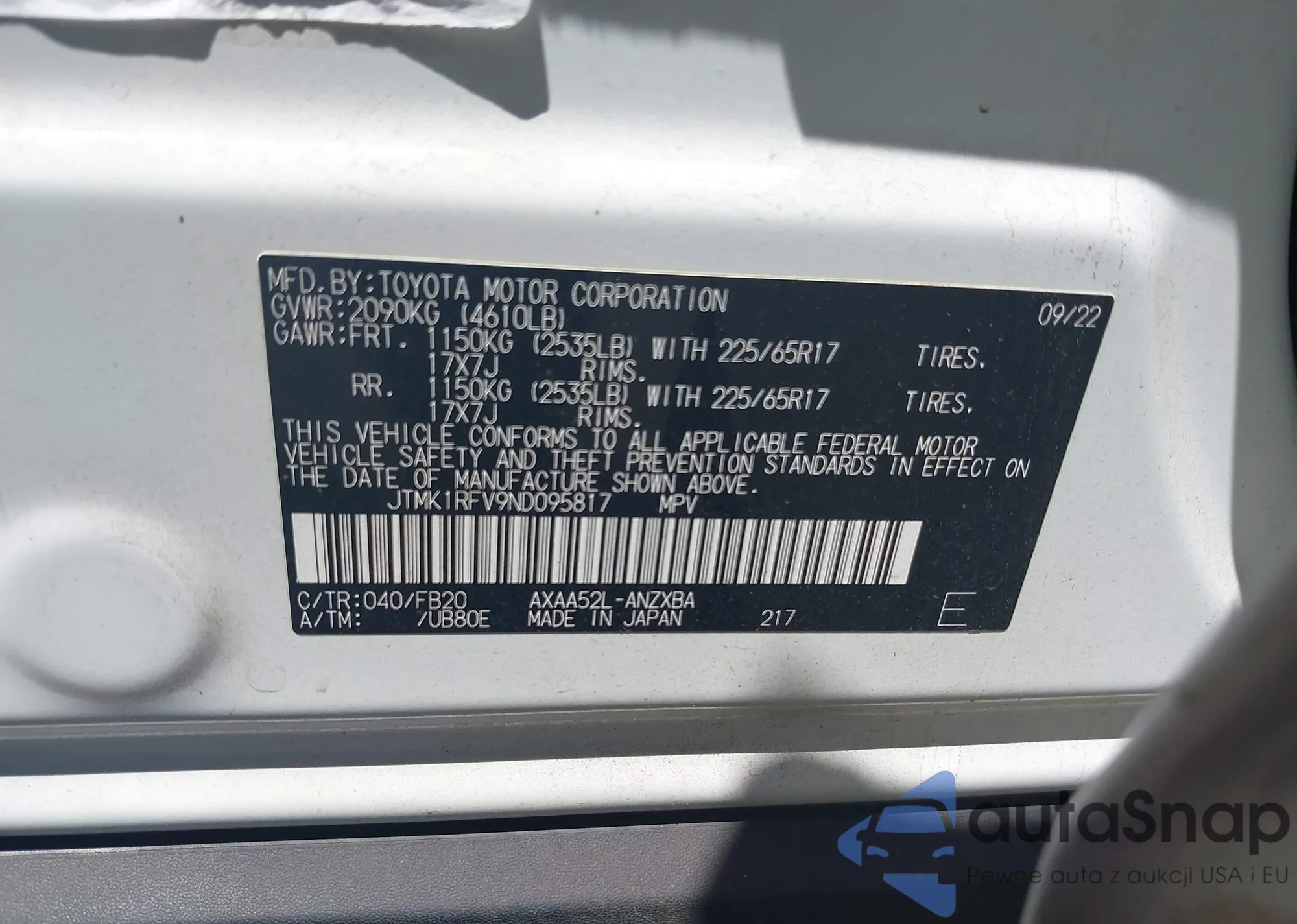 • VIN JTMK1RFV9ND095817