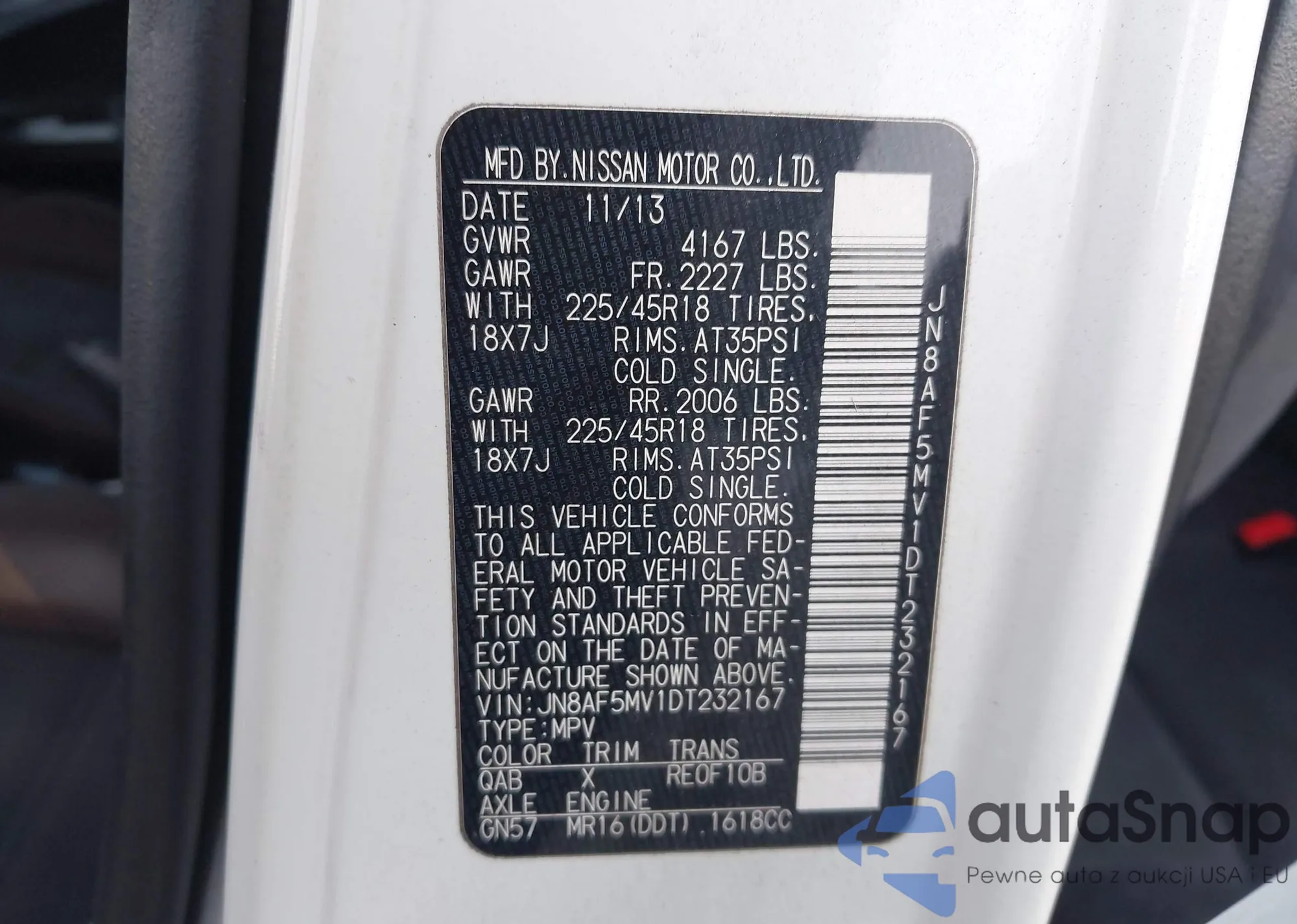 LOT: 43179927 VIN: JN8AF5MV1DT232167
