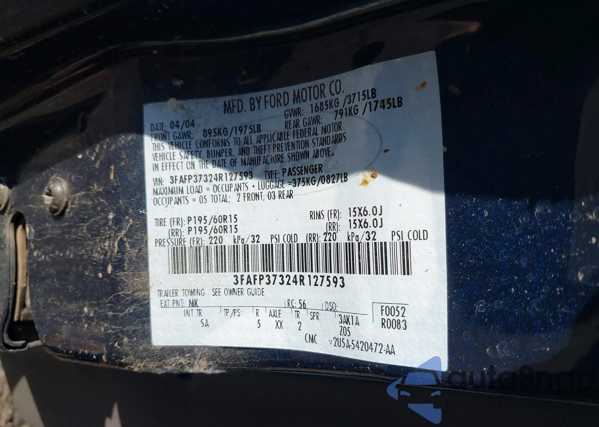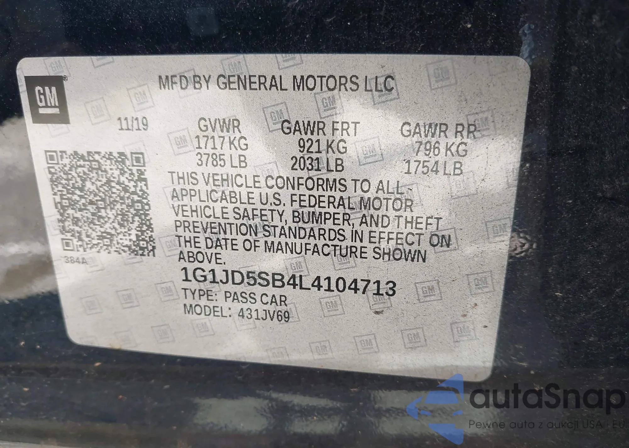 LOT: 43181661 VIN: 1G1JD5SB4L4104713