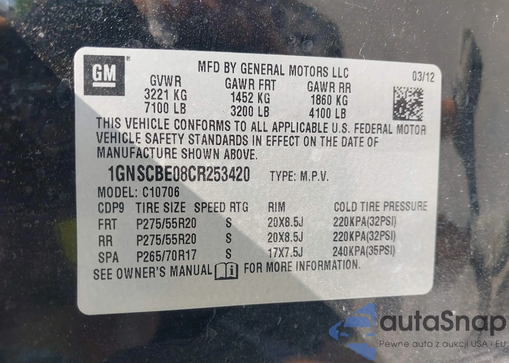 • VIN 5GAEV23778J249401