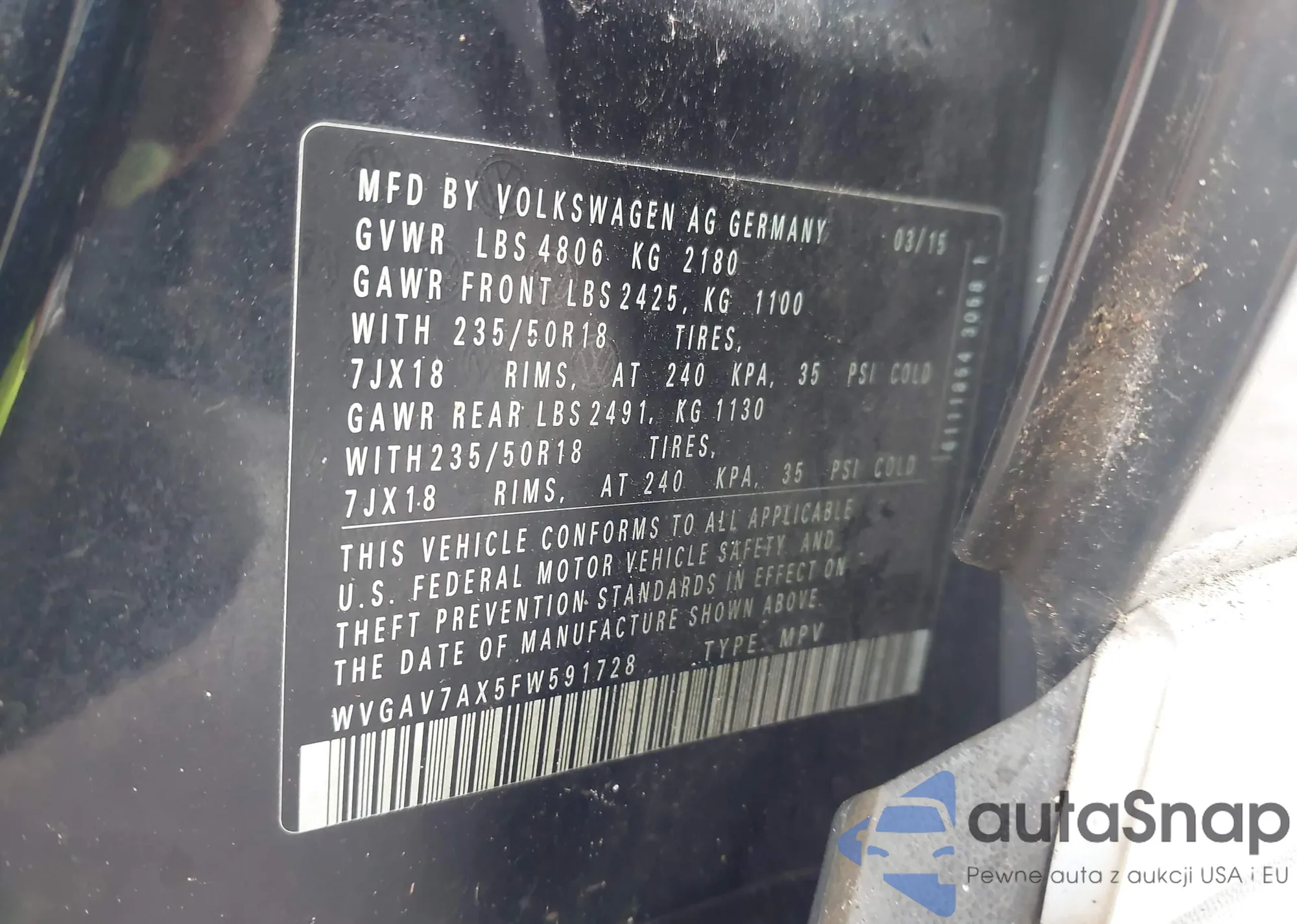 • VIN WVGAV7AX5FW591728