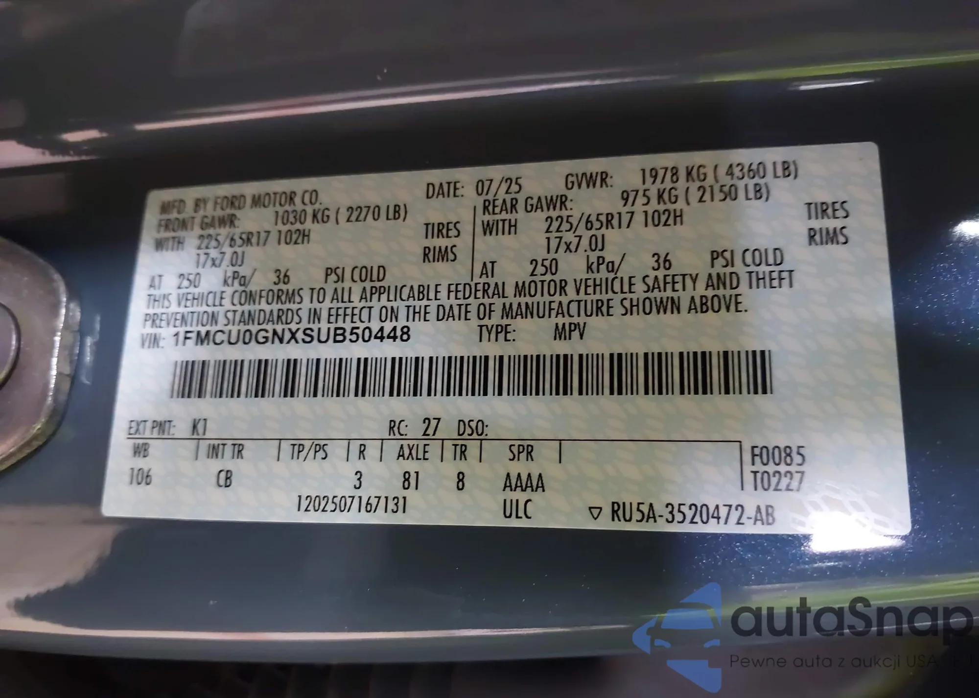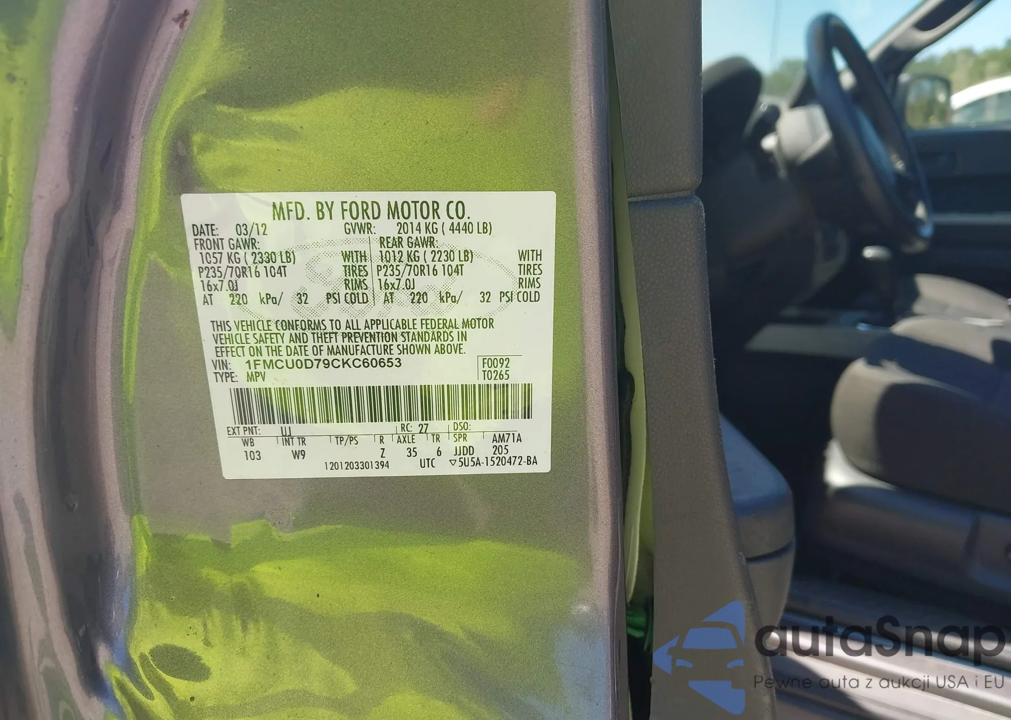 • VIN 1FMCU0D79CKC60653