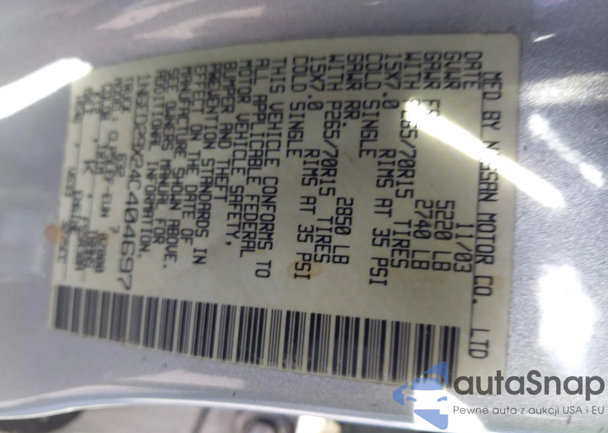 • VIN 1N6ED29X24C404697