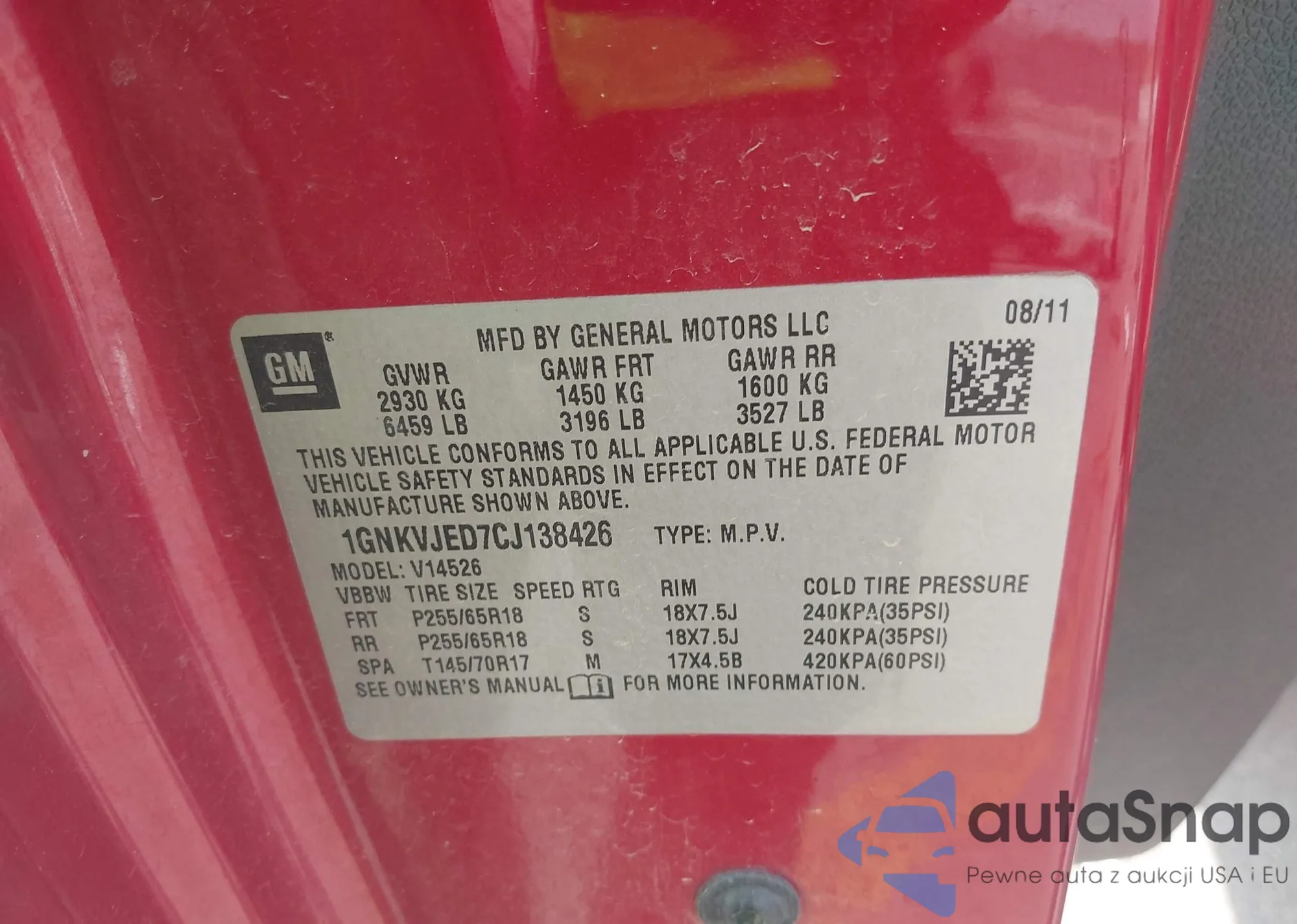 • VIN 1GNKVJED7CJ138426