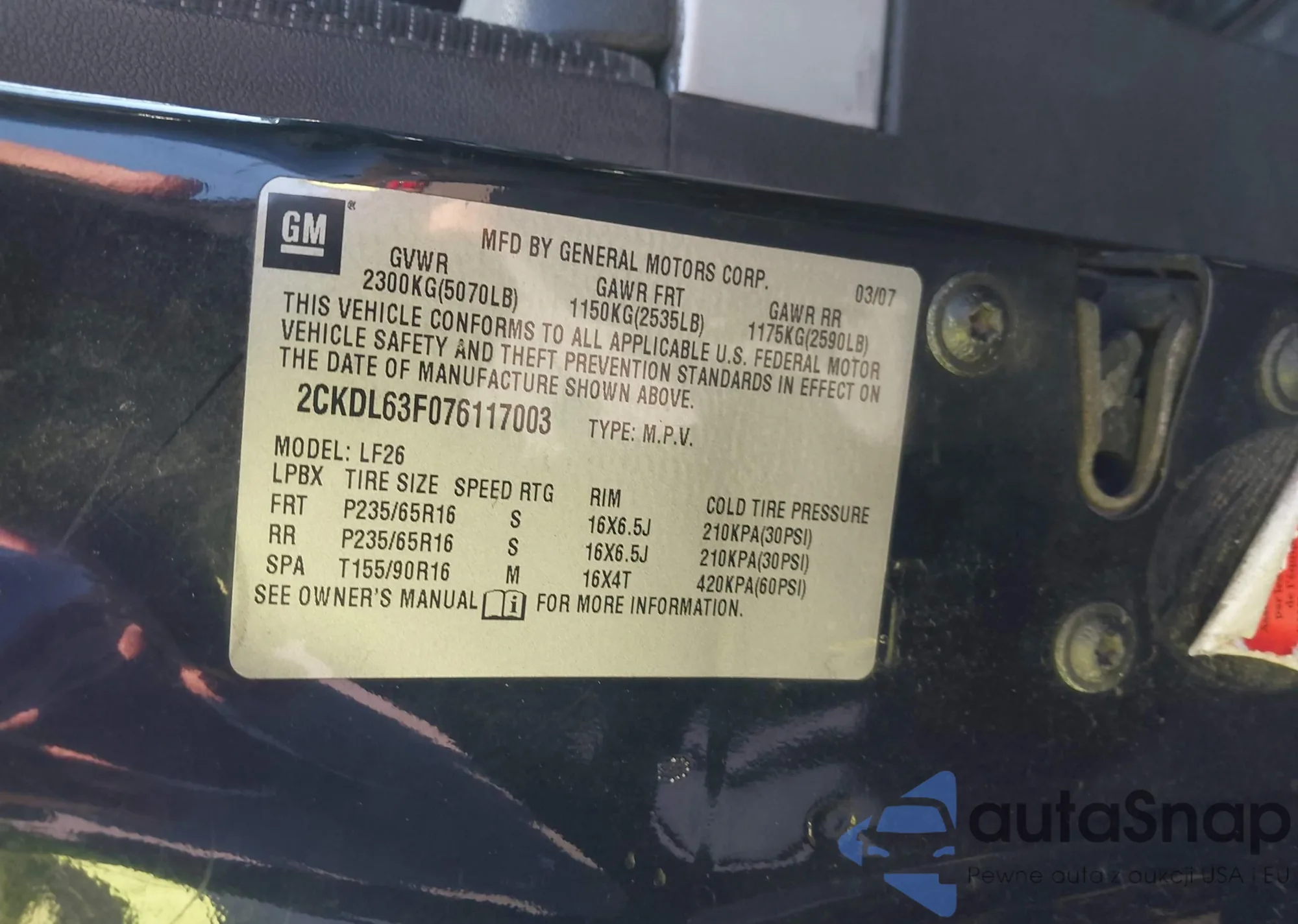 • VIN 2CKDL63F076117003