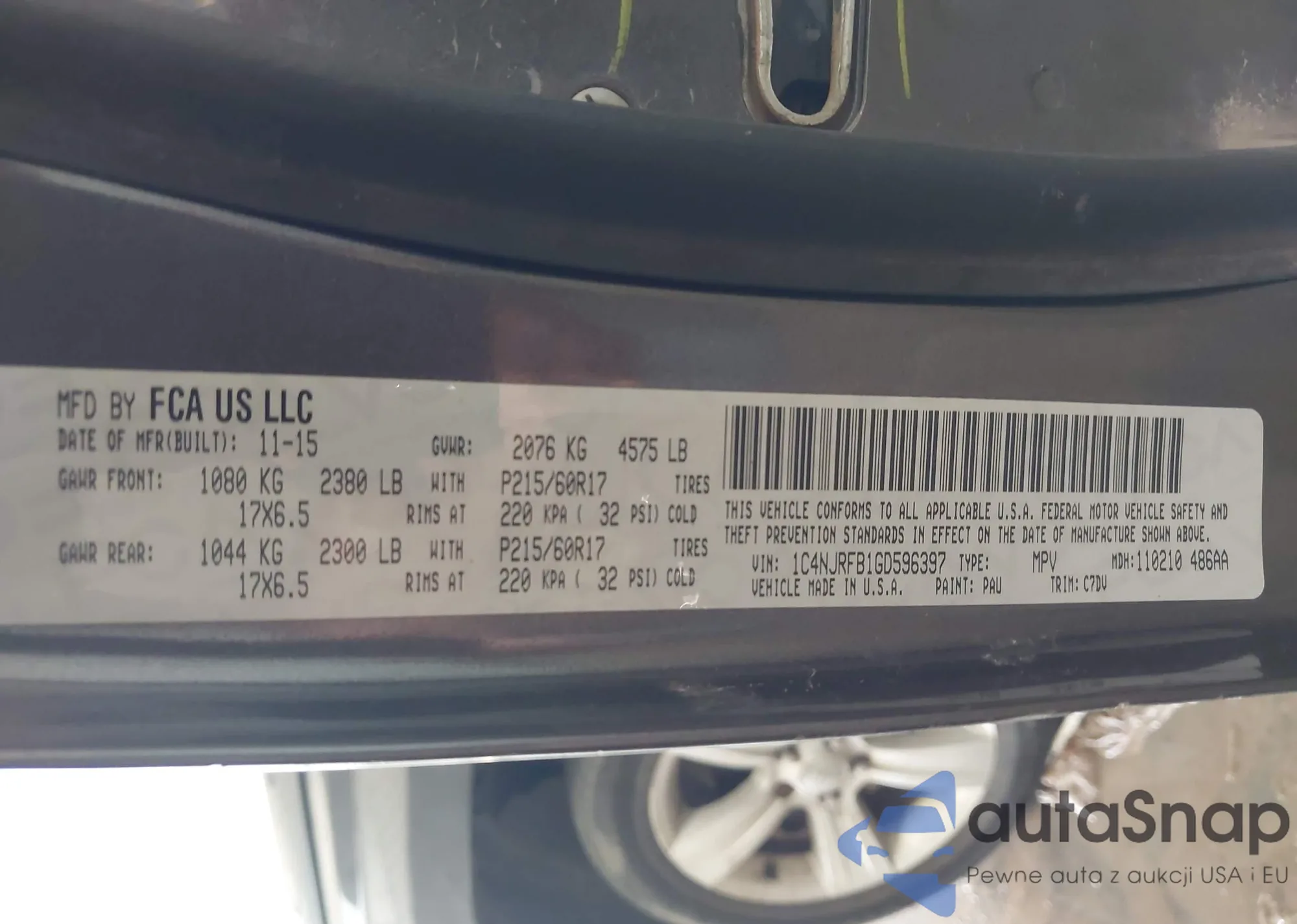 LOT: 42928750 VIN: 1C4NJRFB1GD596397