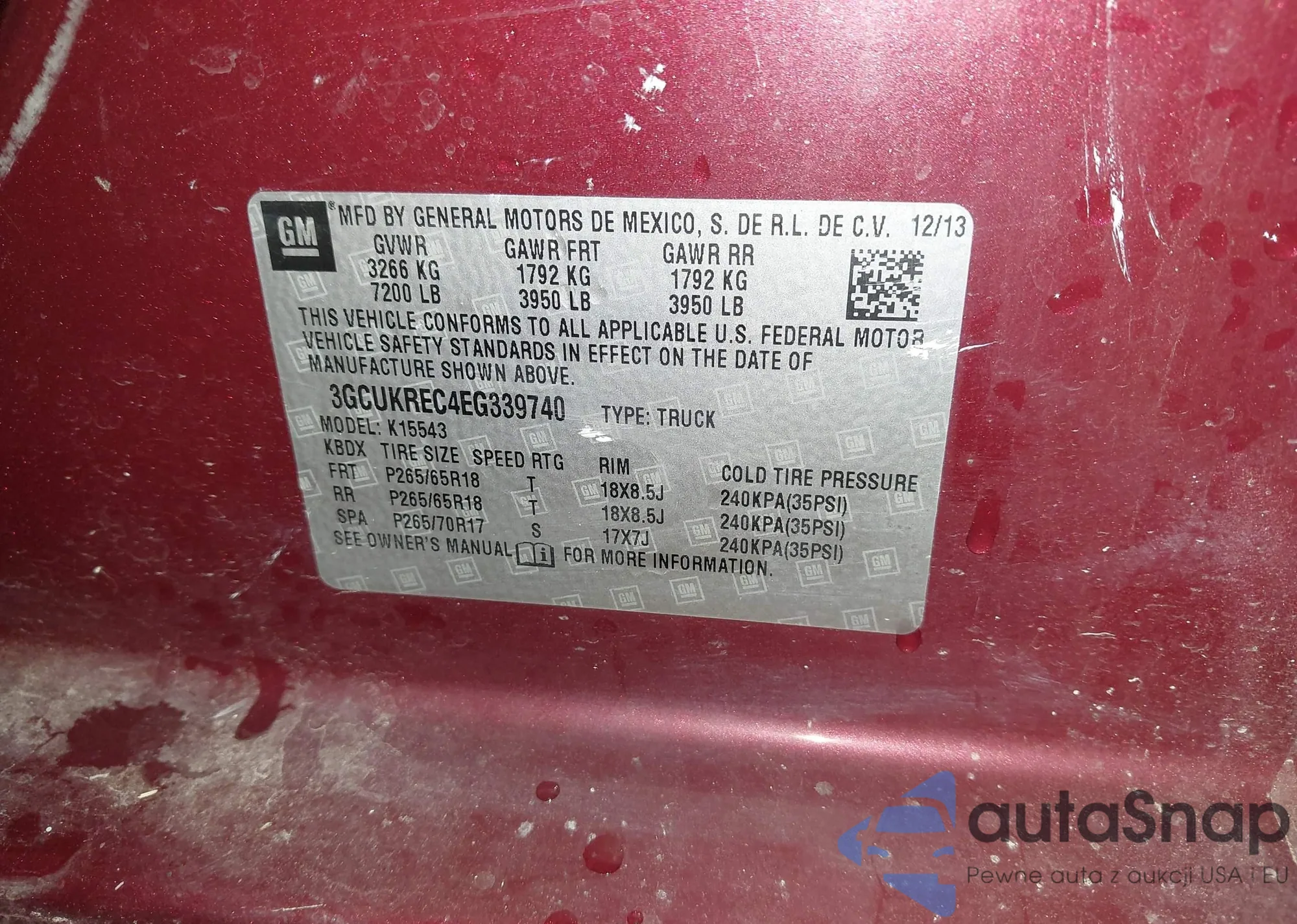 LOT: 42962249 VIN: 1GCRKSE78DZ324253