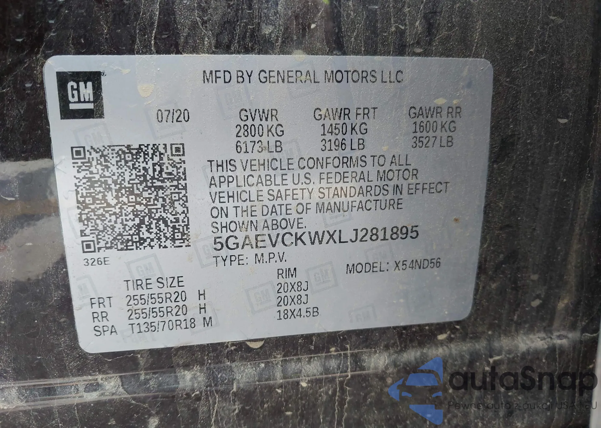 LOT: 42960072 VIN: 5GAEVCKWXLJ281895