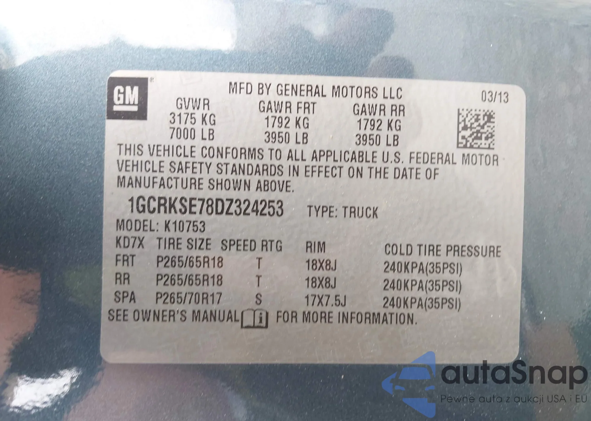 • VIN 1GCRKSE78DZ324253