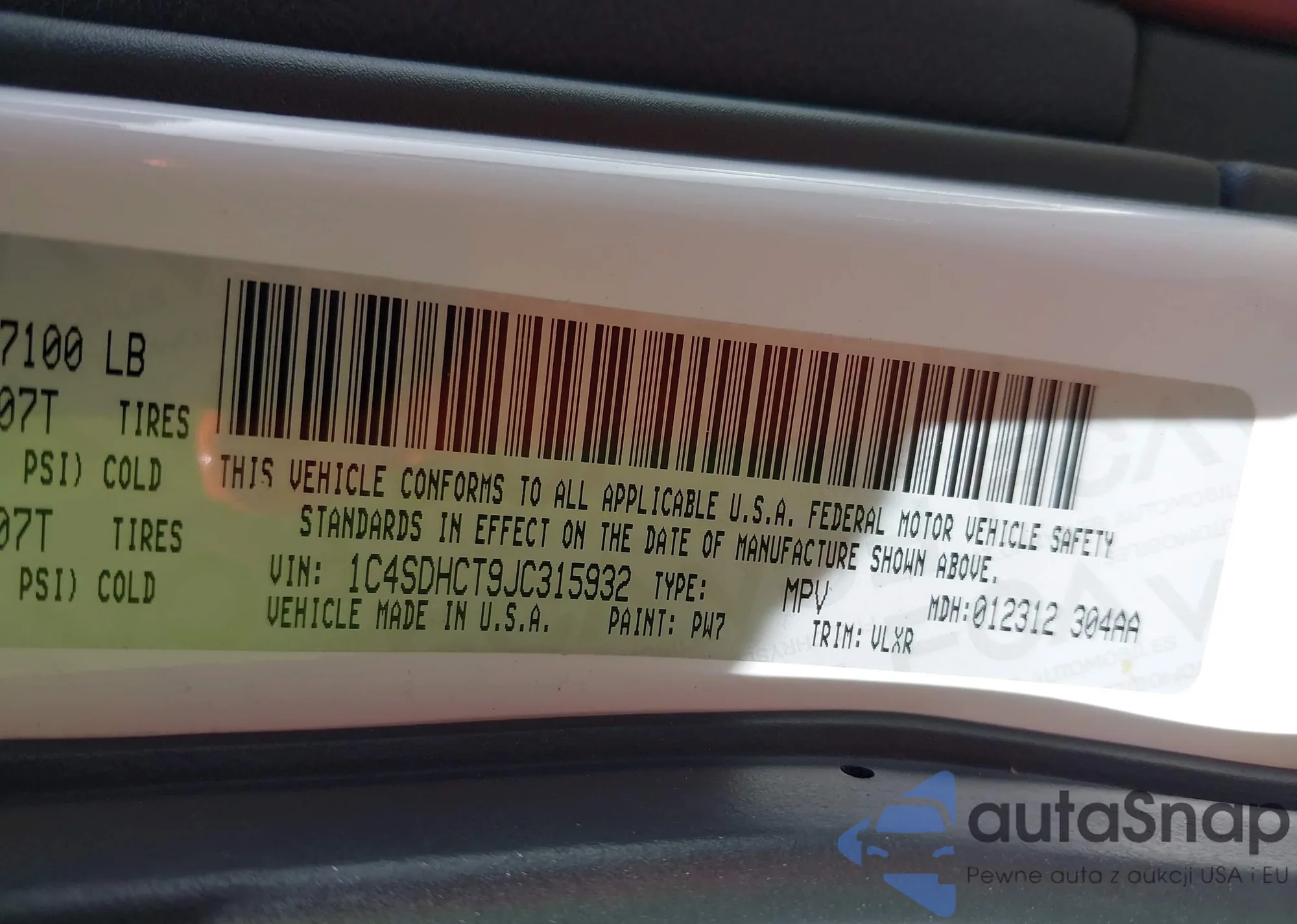 • VIN 1C4SDHCT9JC315932