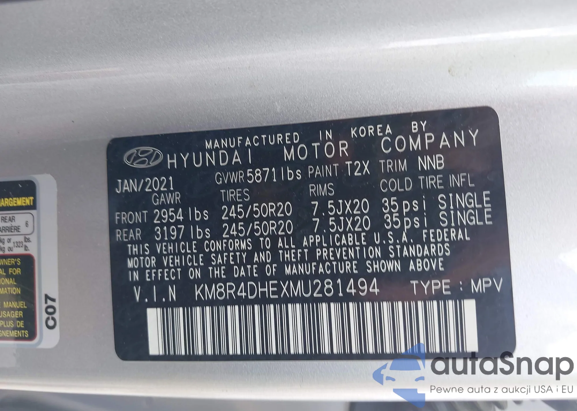 LOT: 42989756 VIN: KM8R4DHEXMU281494