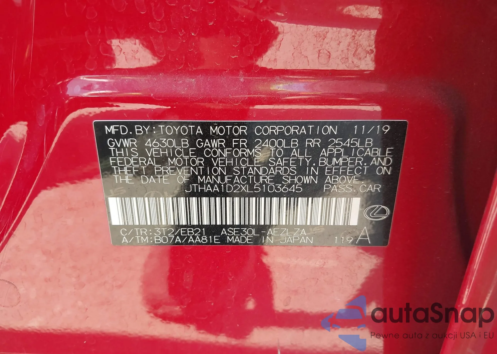 • VIN 1HGCV1F39JA078120