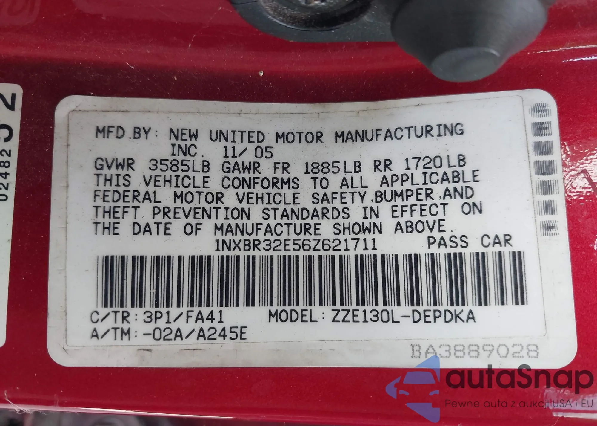 LOT: 43132410 VIN: 1NXBR32E56Z621711