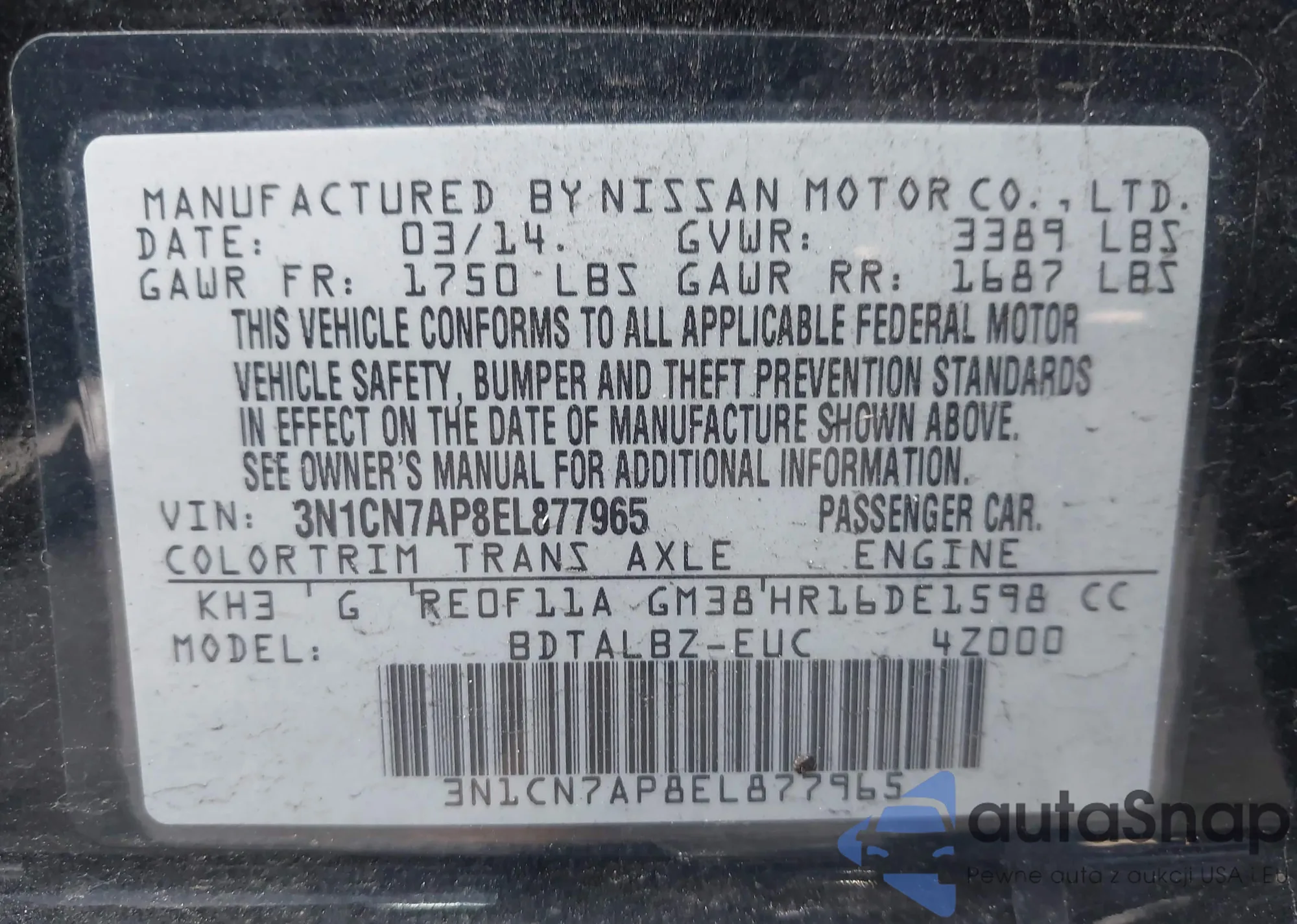 LOT: 43340683 VIN: 3KPFT4DE3SE093699