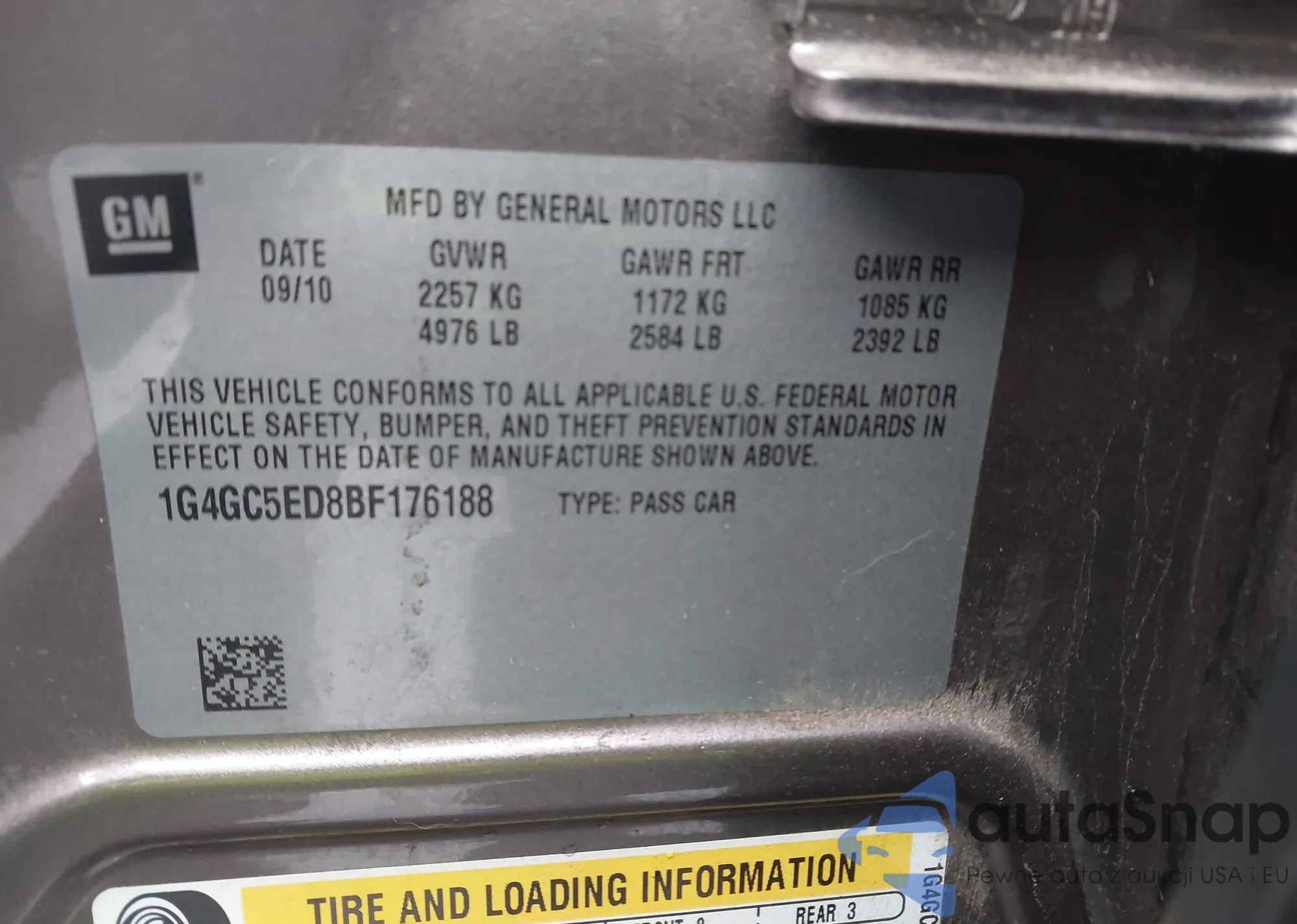 • VIN 1G4GC5ED8BF176188