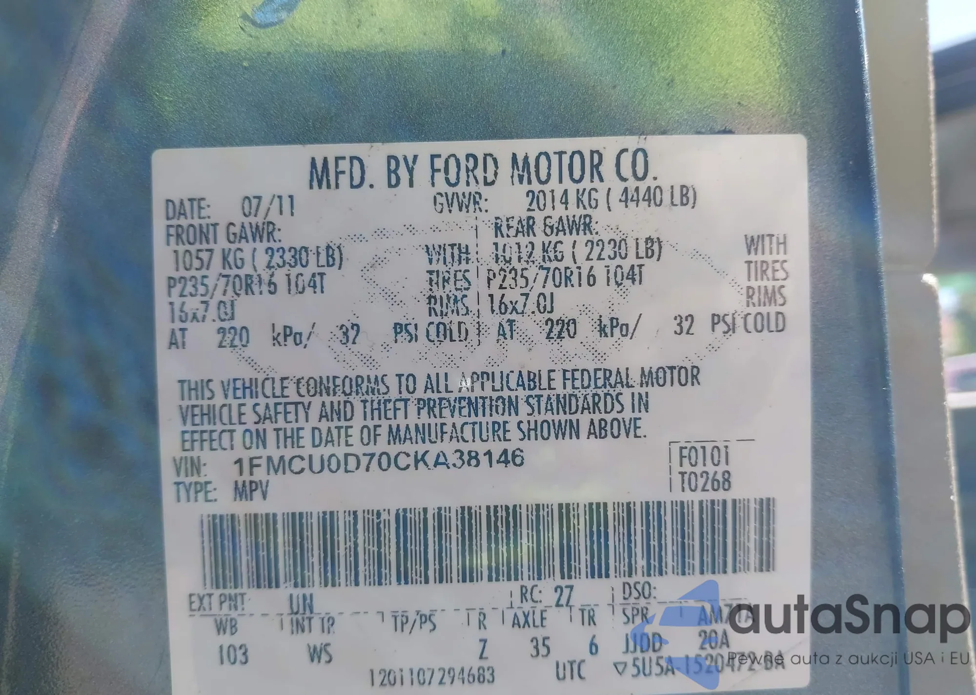 LOT: 43346798 VIN: 1FMCU9DGXBKB69331