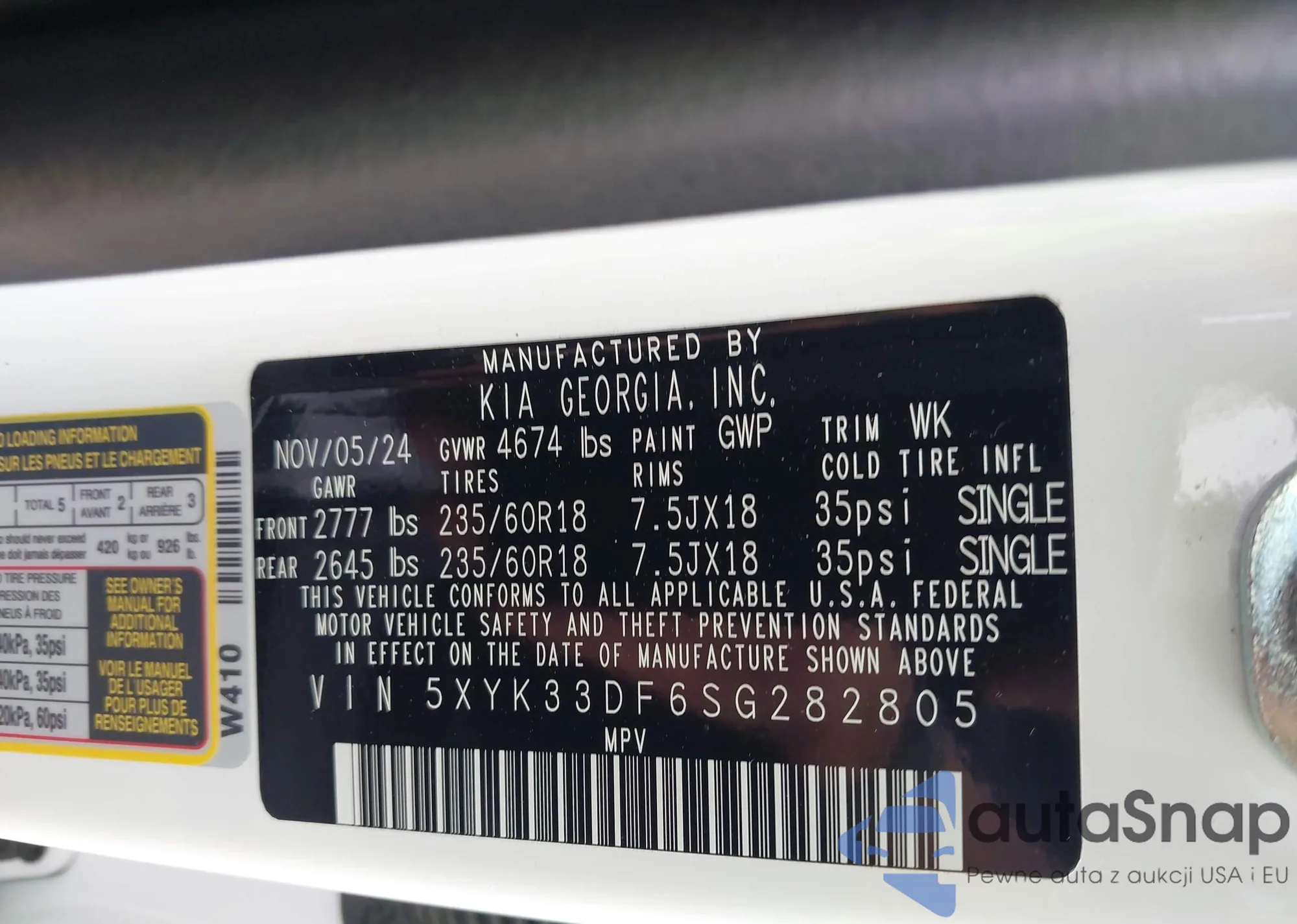 • VIN 5XYK33DF6SG282805