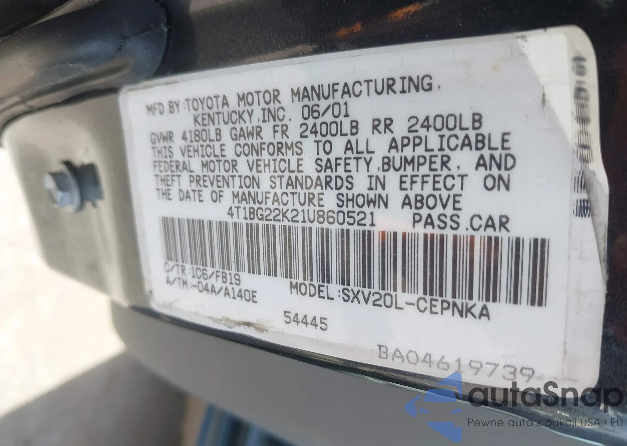 • VIN 4T1BG22K21U860521