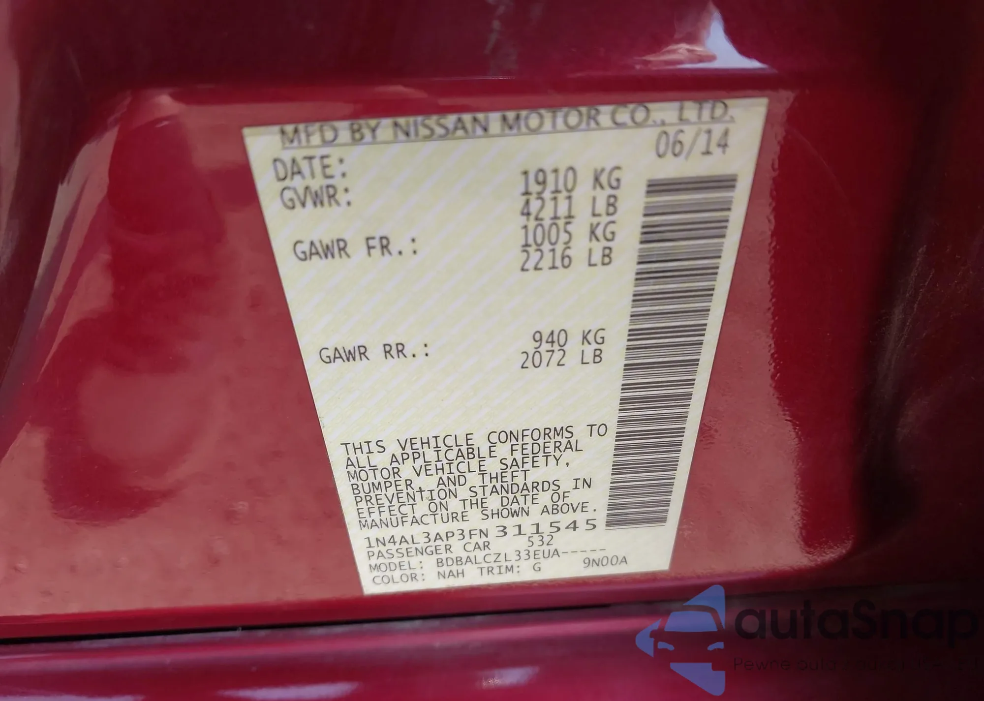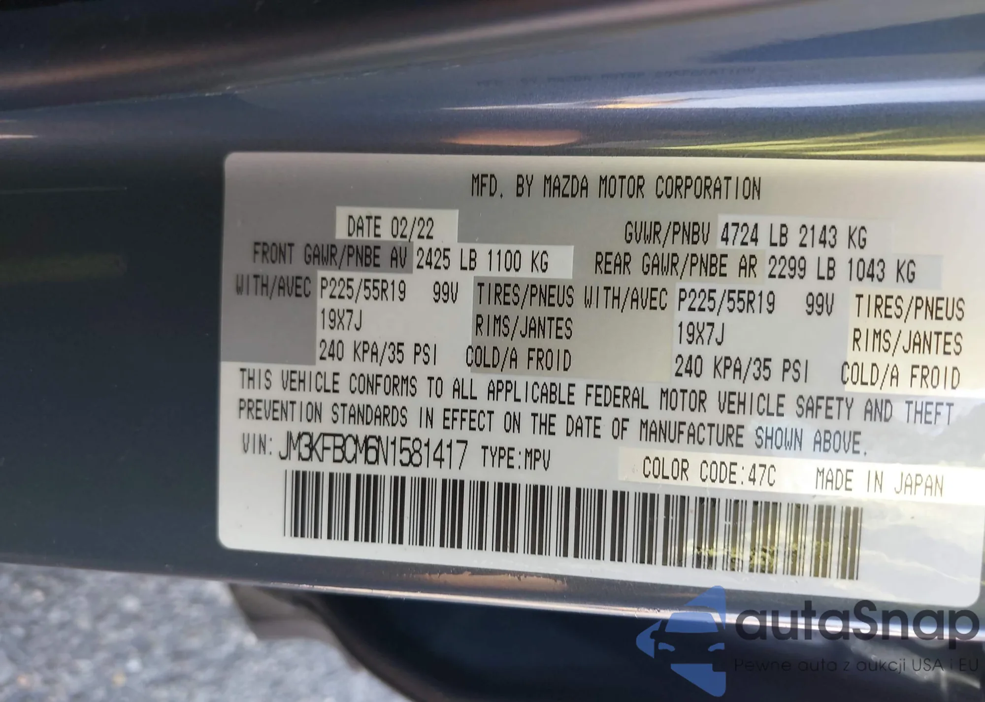 LOT: 43191838 VIN: JM3KFBCM6N1581417