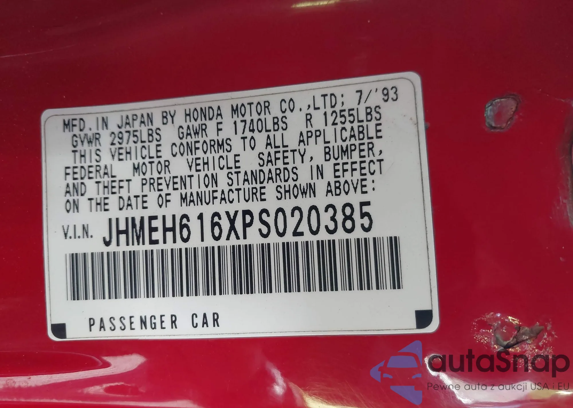 • VIN 5J6YH28645L016640