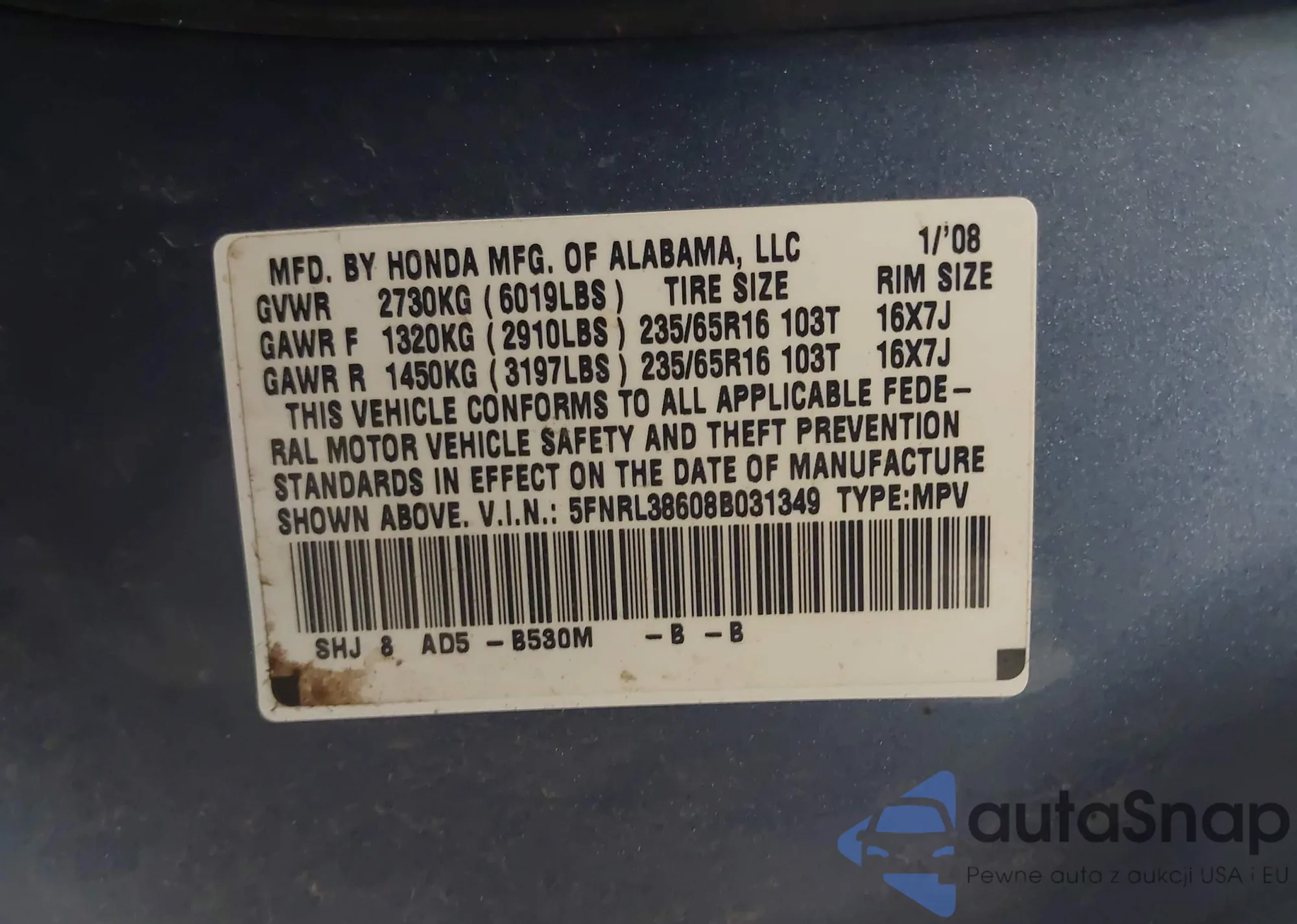 LOT: 43549336 VIN: JHMCP26708C029063