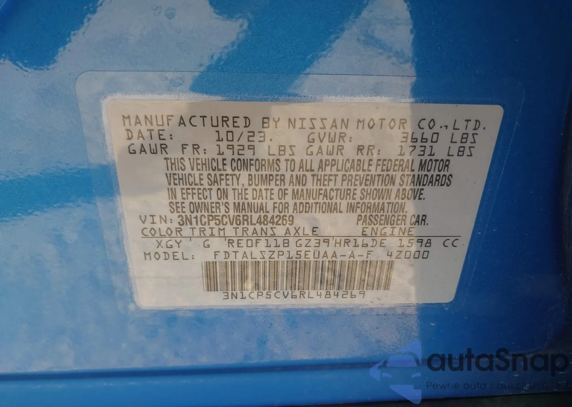 • VIN KL8CD6S93FC715984