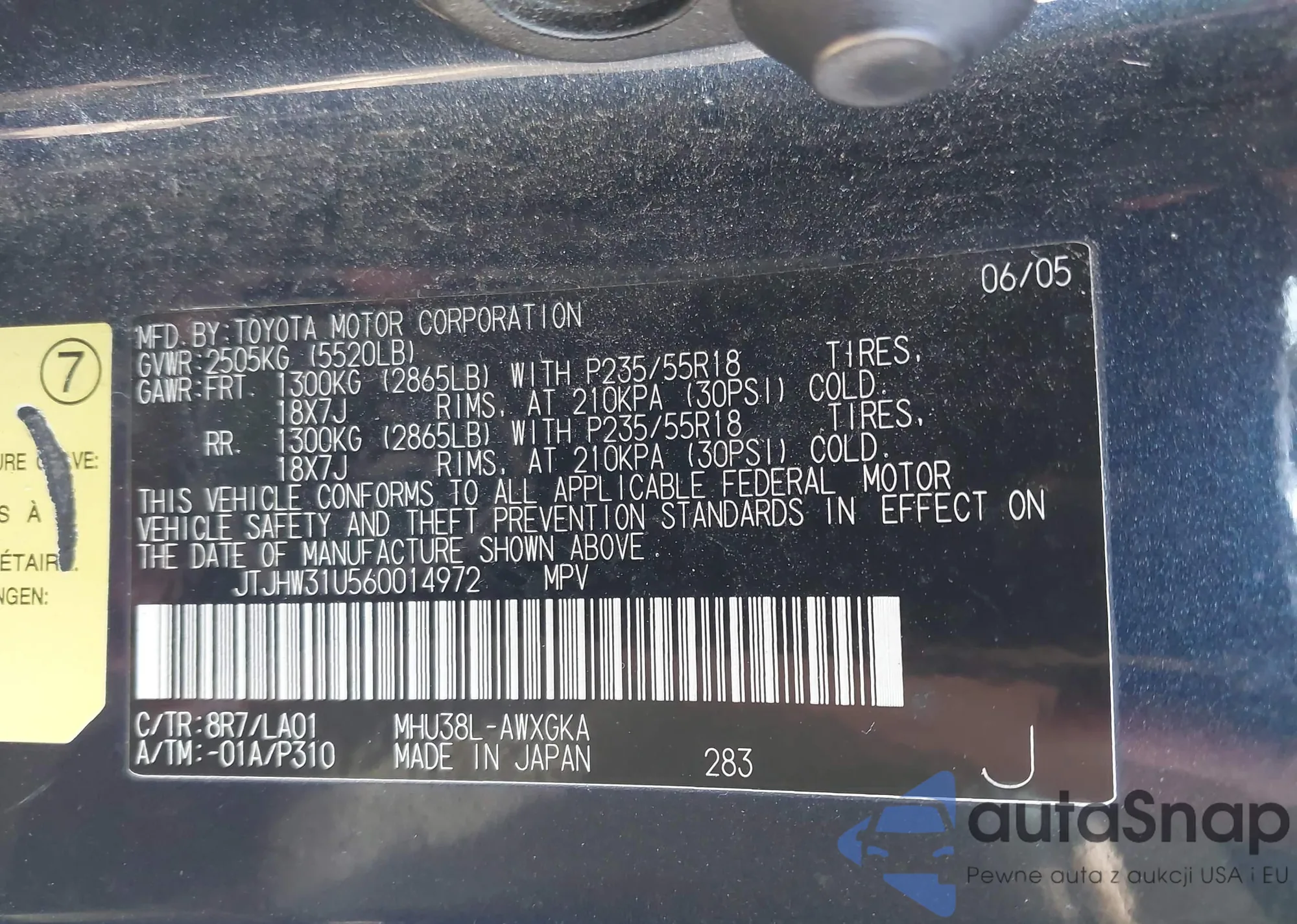 LOT: 43383079 VIN: JM3ER4WL8A0310927