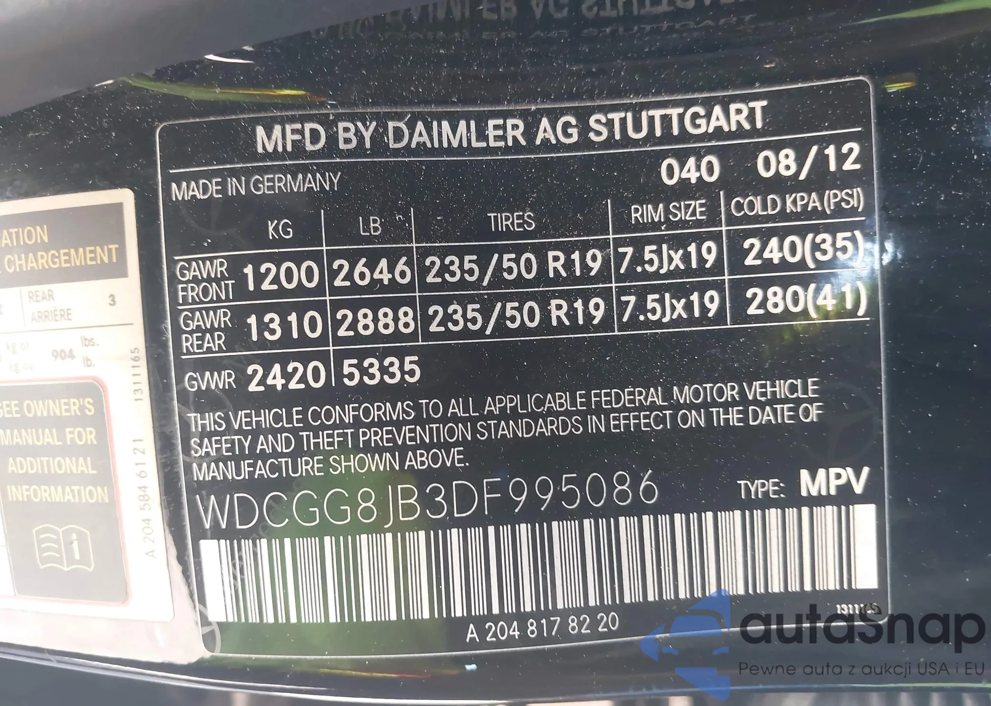 • VIN WDCGG8JB3DF995086