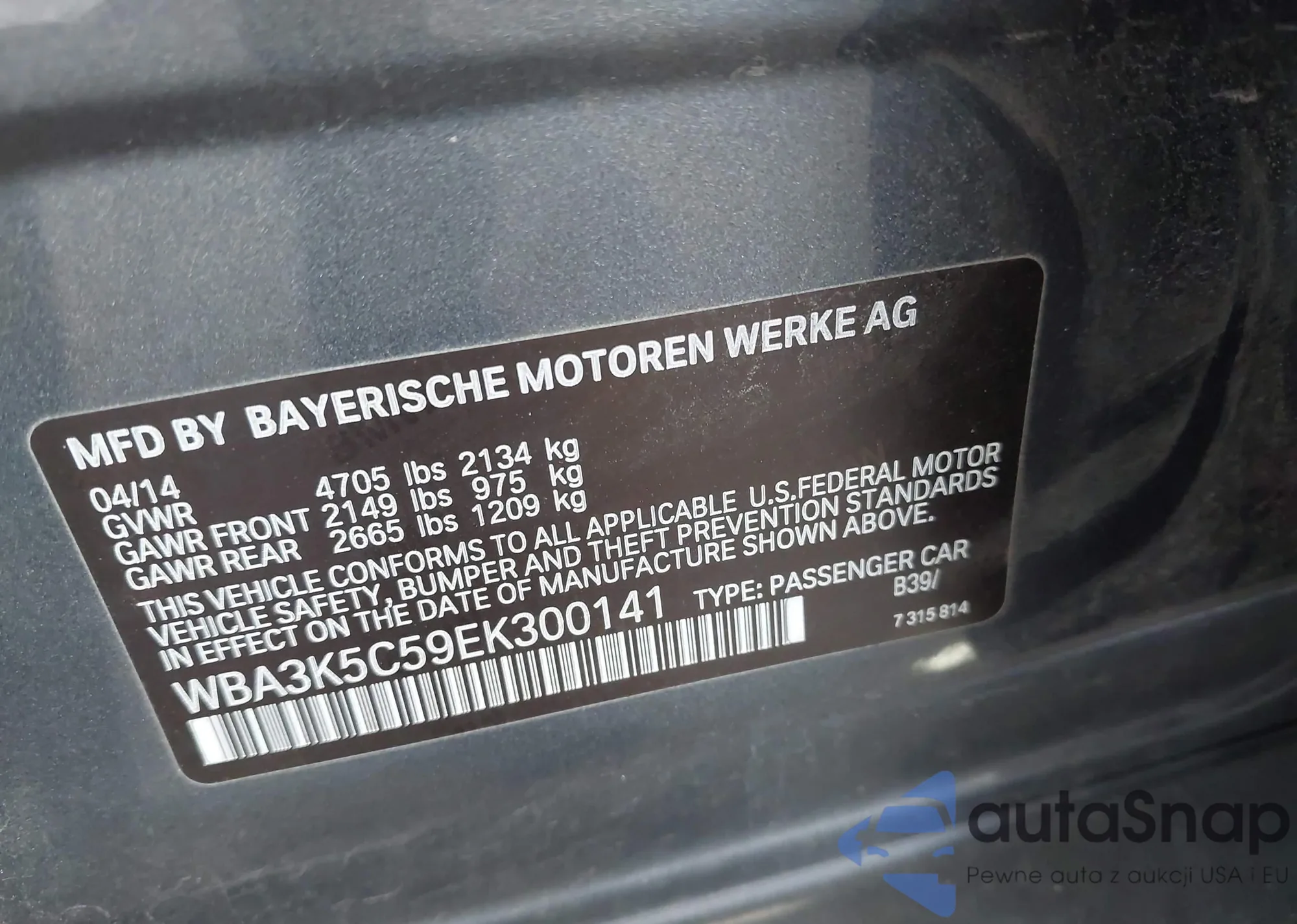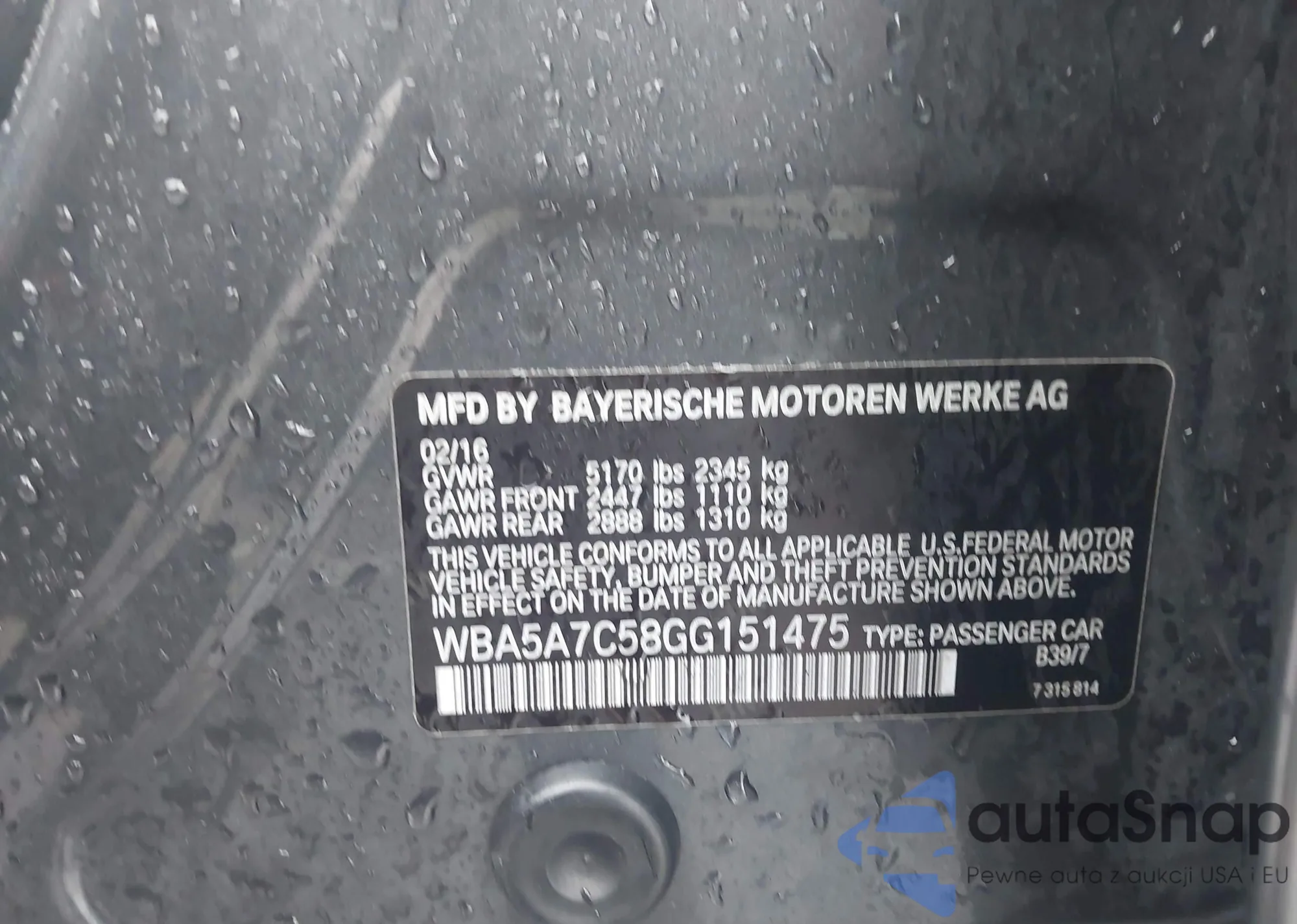 LOT: 41506331 VIN: WBA5A7C58GG151475