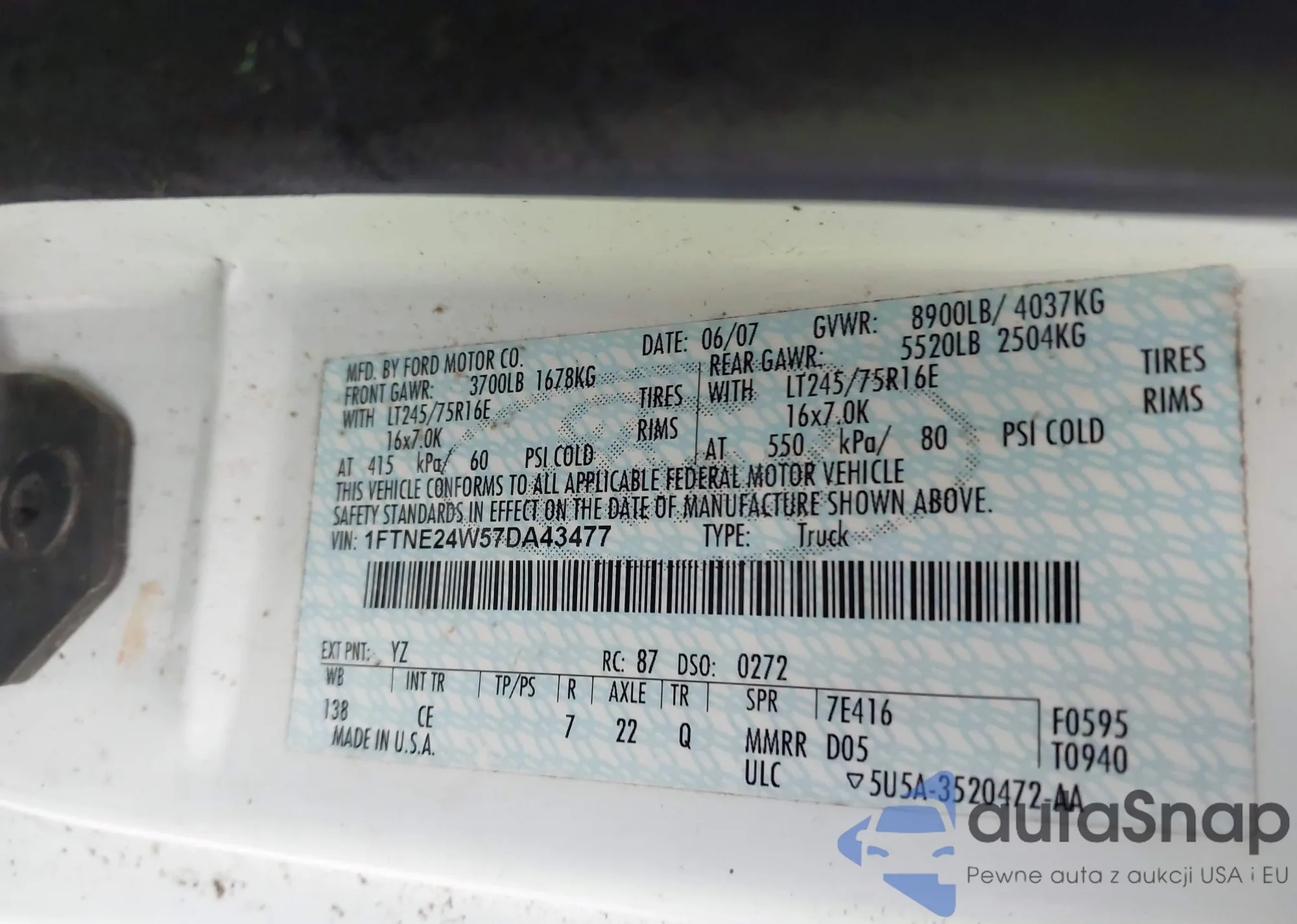 • VIN 1FTNE24W57DA43477