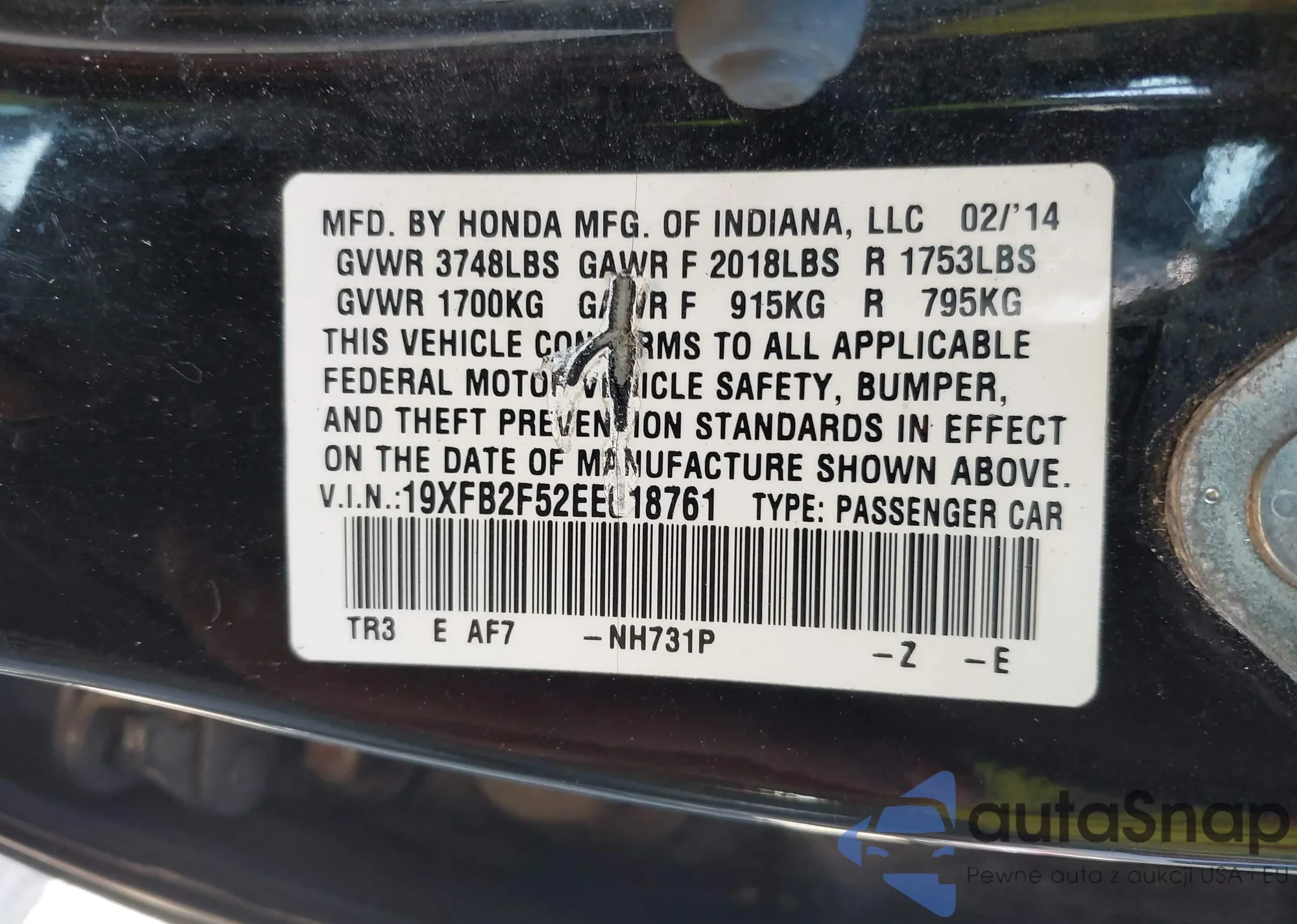 LOT: 43570171 VIN: 5FNYF18728B055040