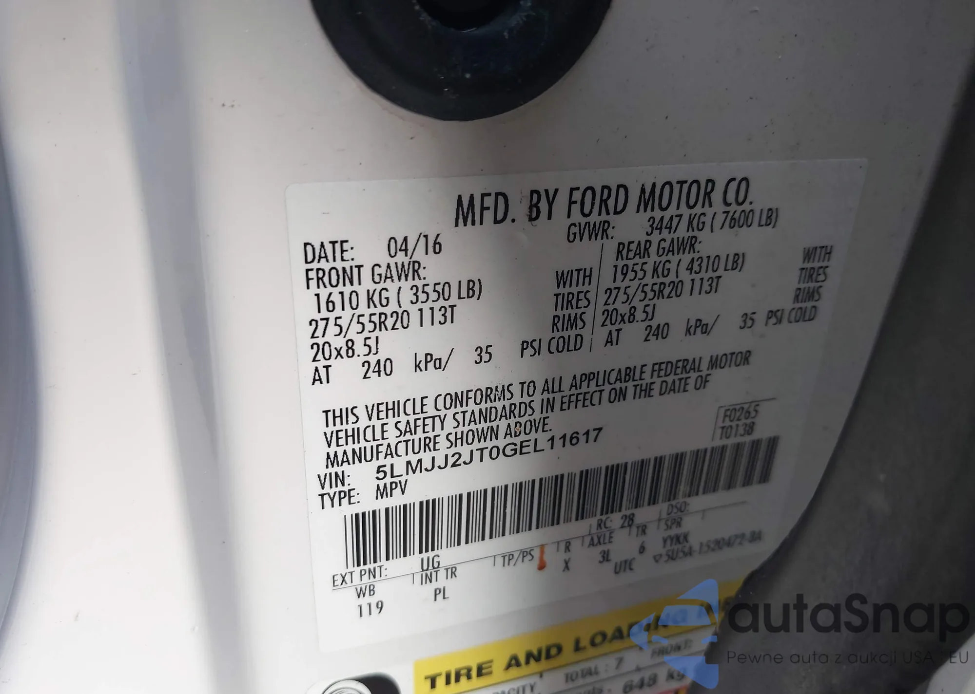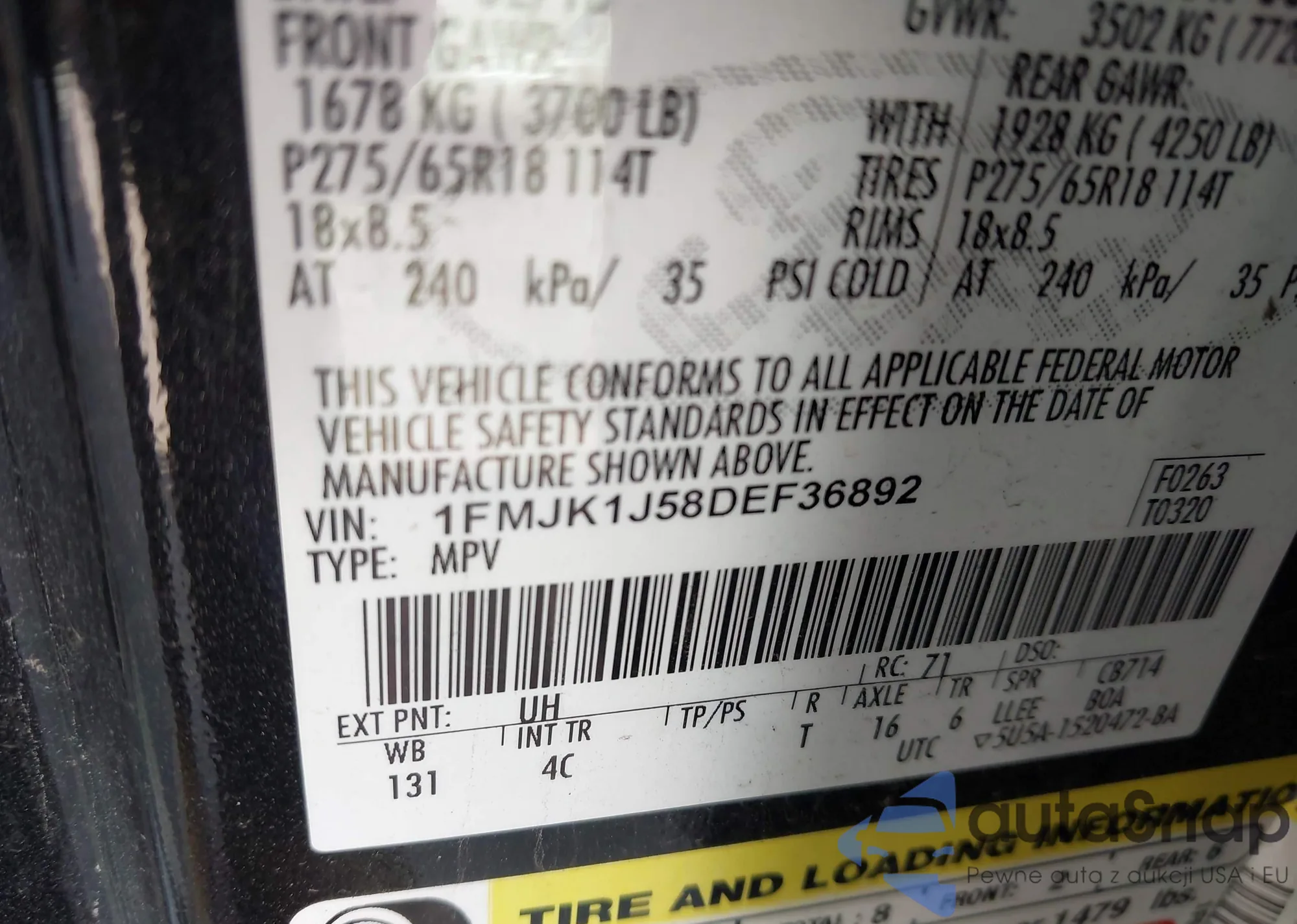 LOT: 43323402 VIN: 1FMJK1J58DEF36892