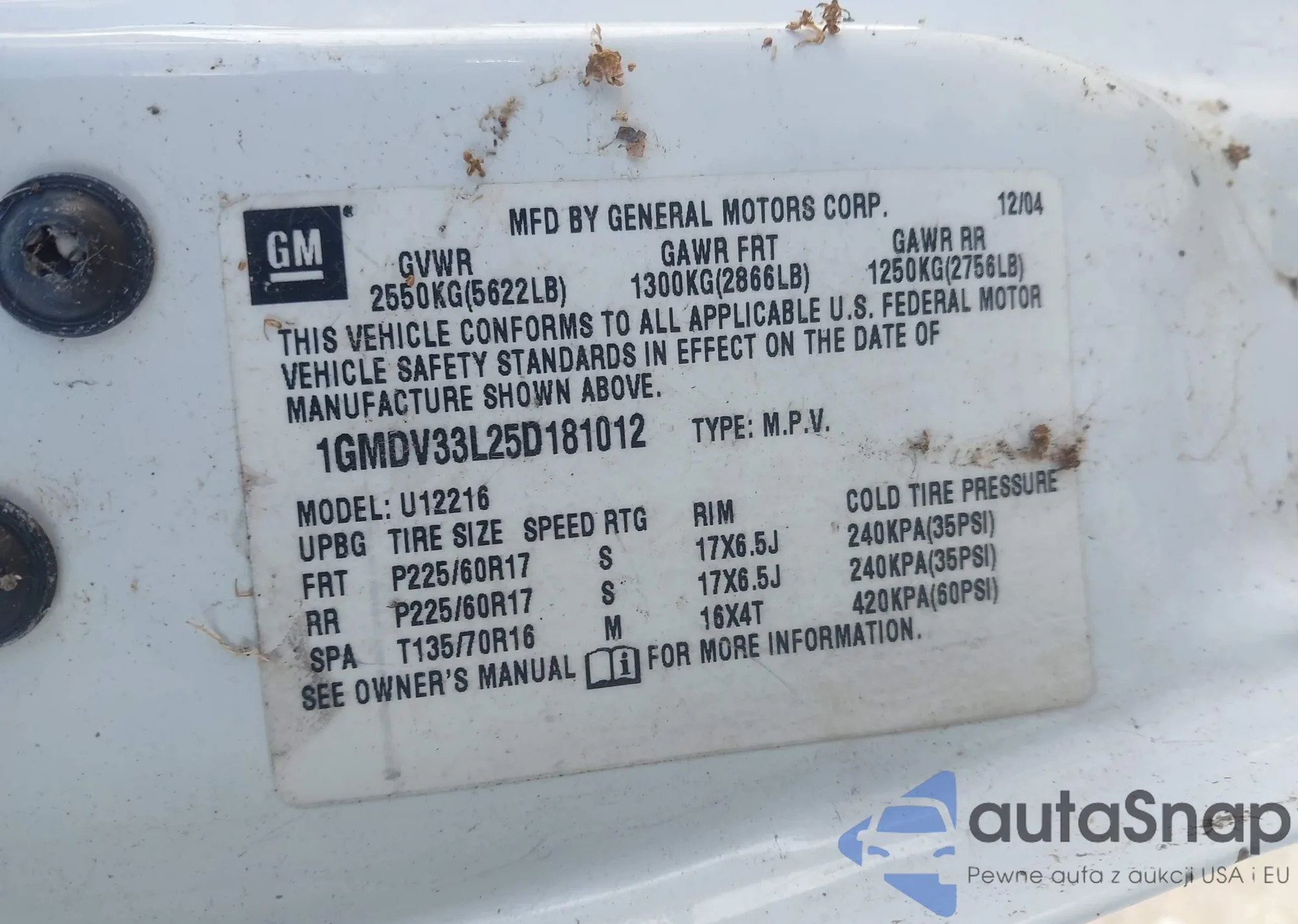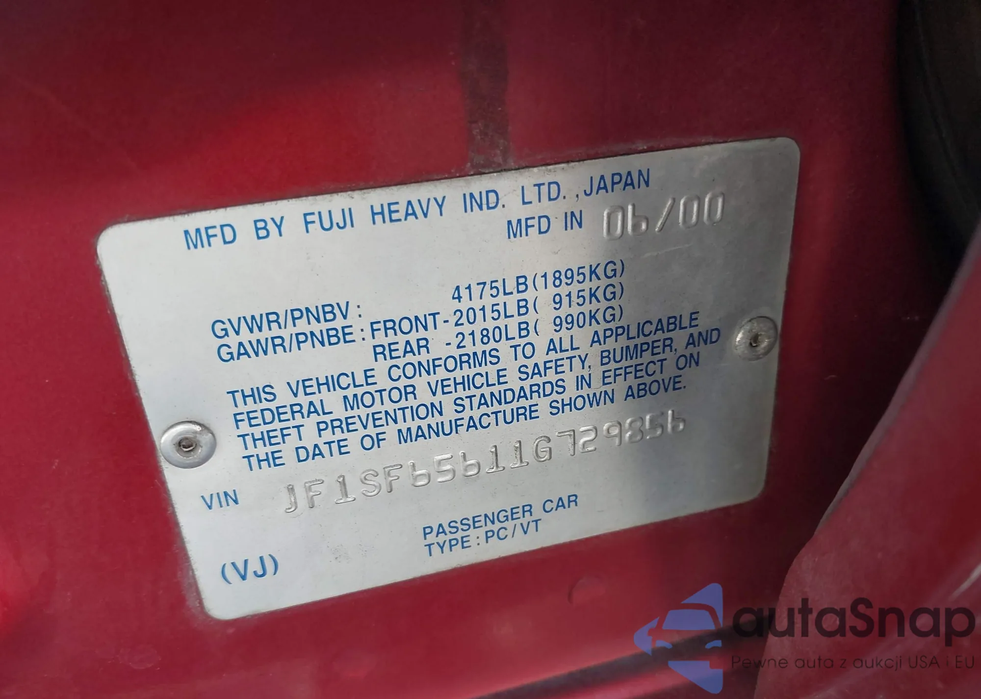 LOT: 43503527 VIN: JF1SF65611G729856