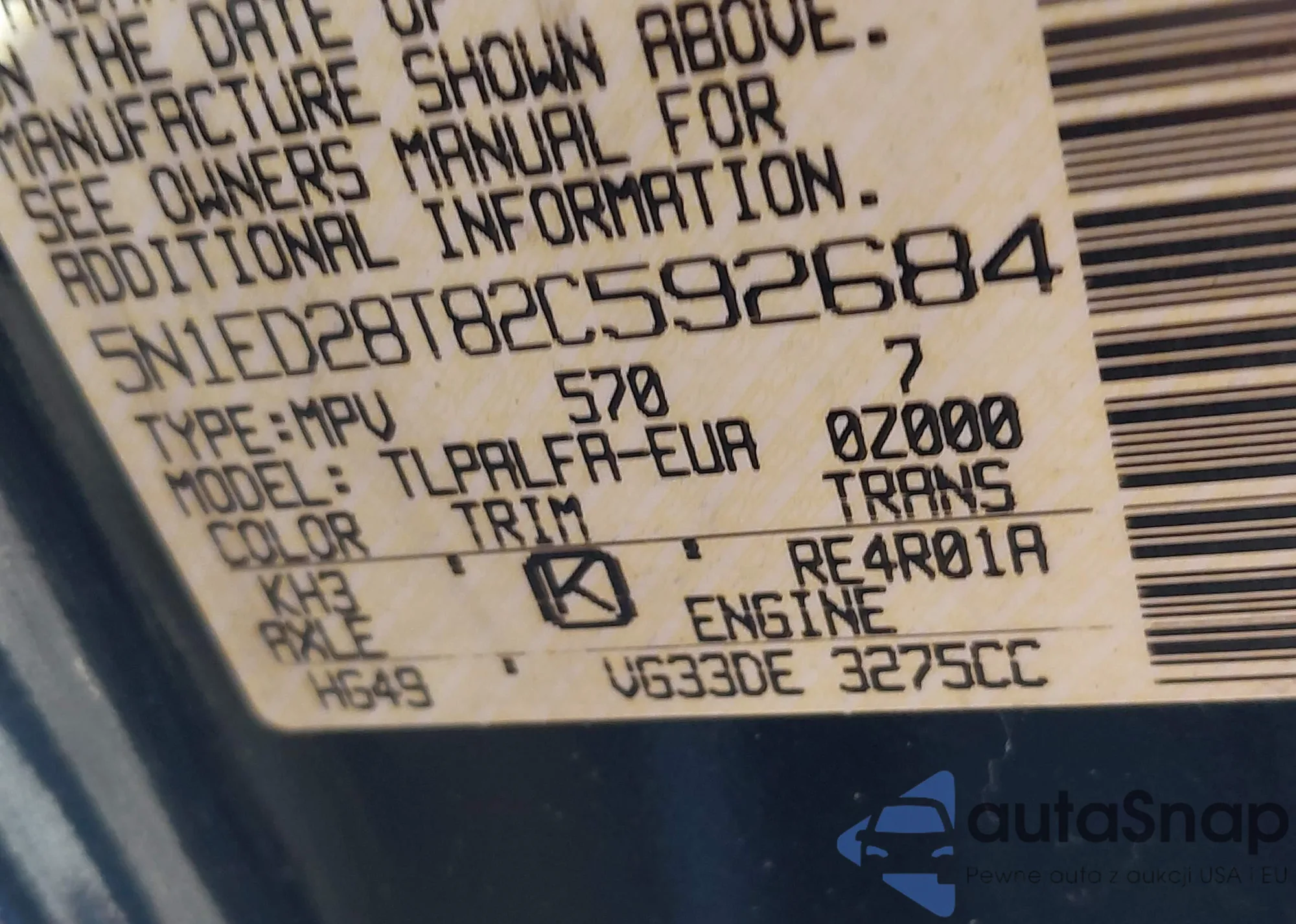 • VIN 5N1ED28T82C592684