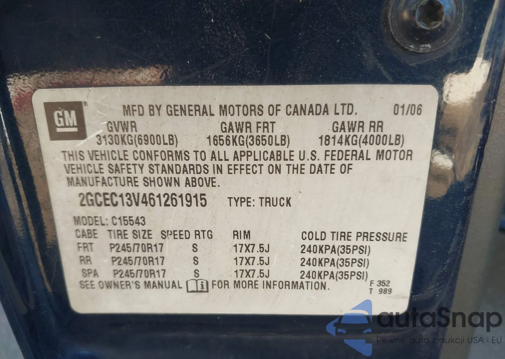 • VIN 2GCEC13V461261915