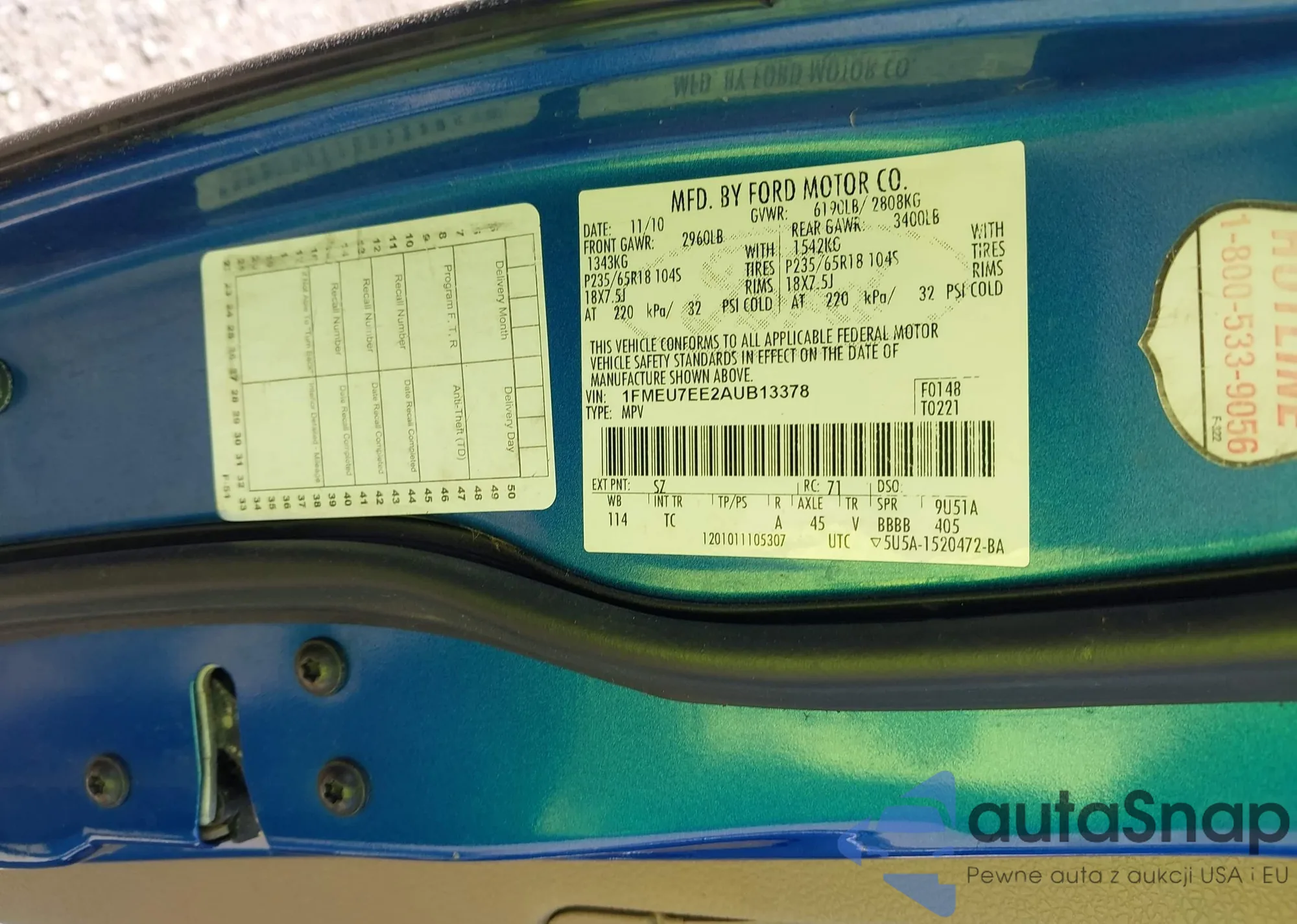 • VIN 1FMEU7EE2AUB13378