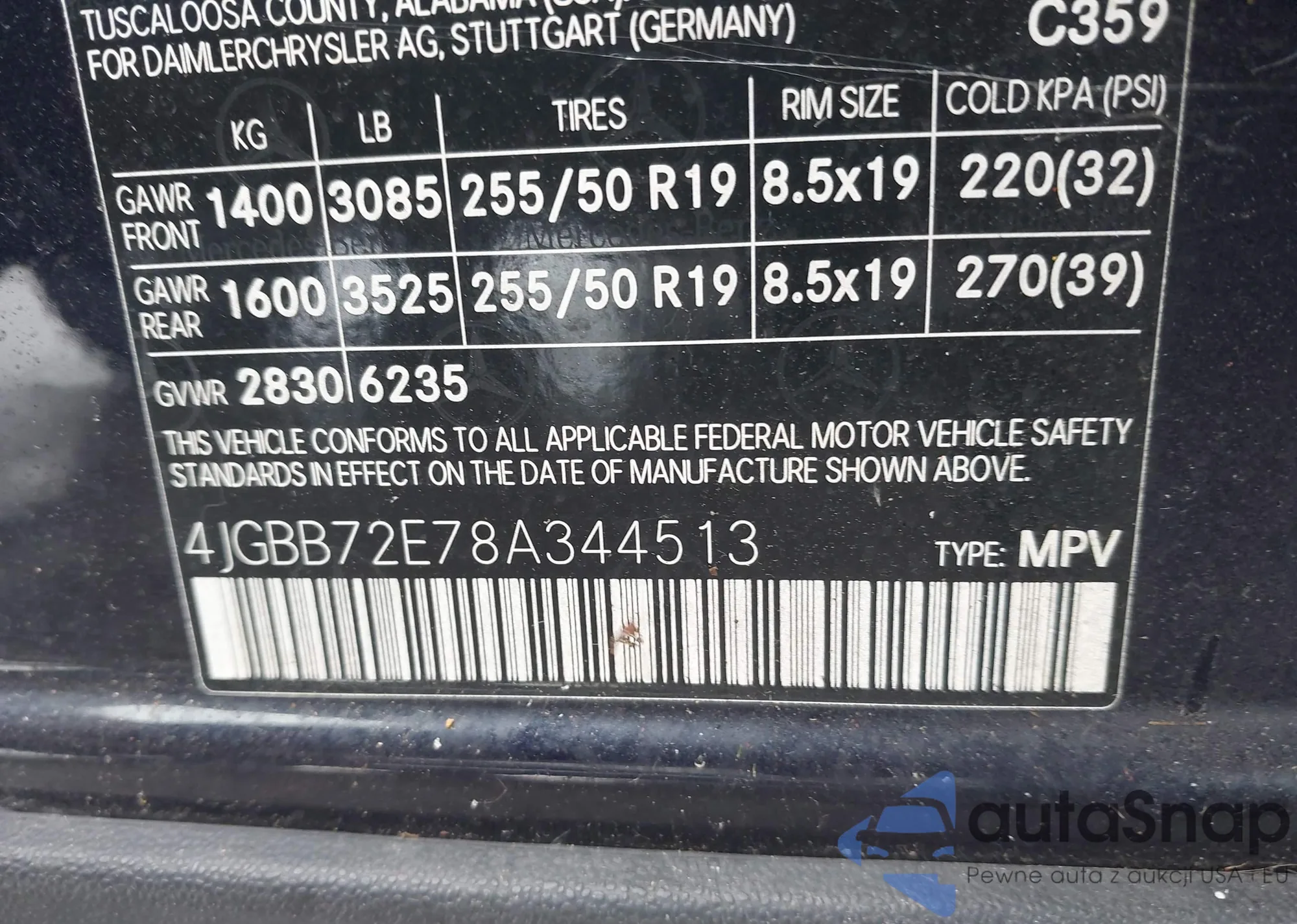 LOT: 43501967 VIN: 4JGBB72E78A344513