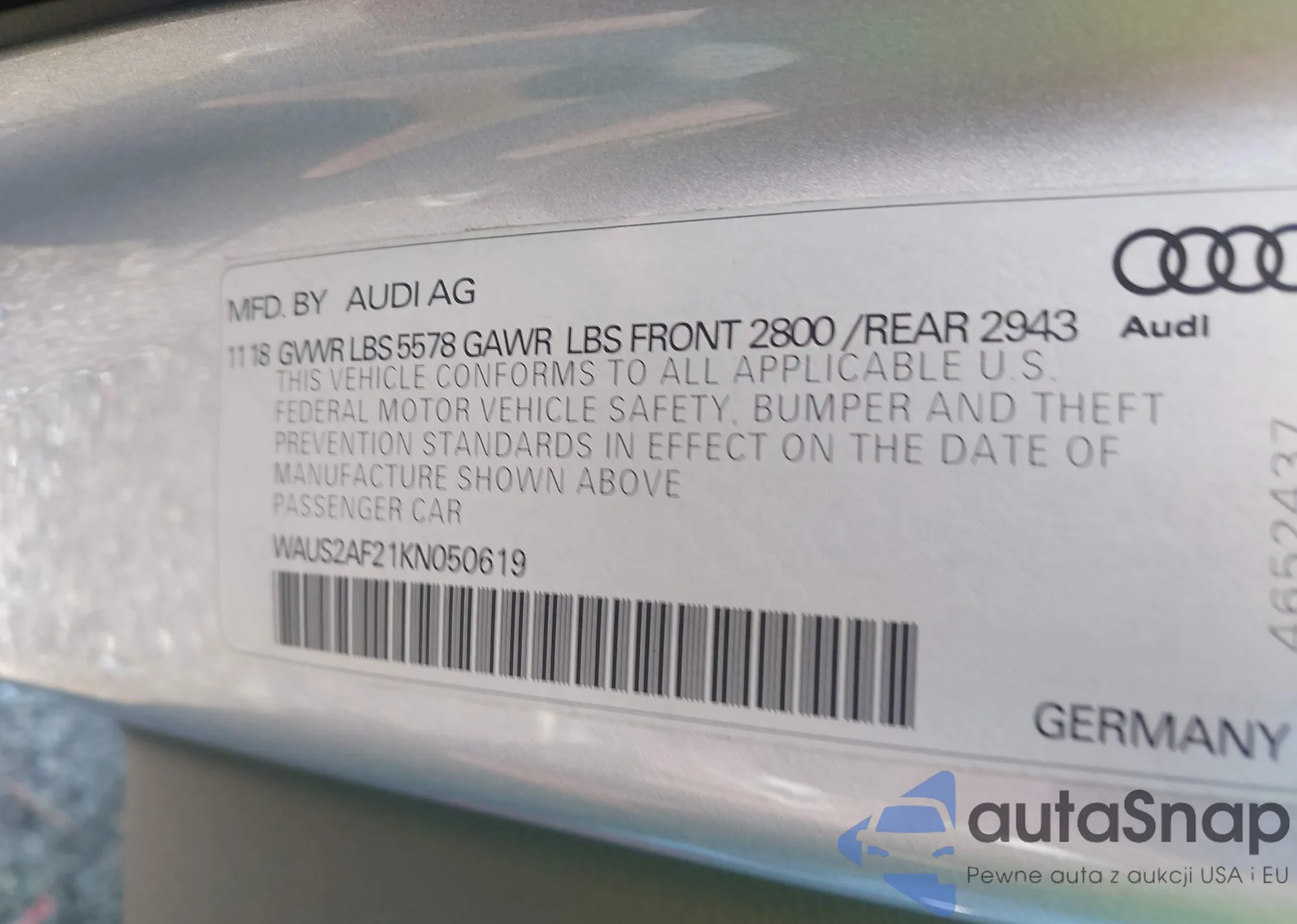 • VIN WAUS2AF21KN050619