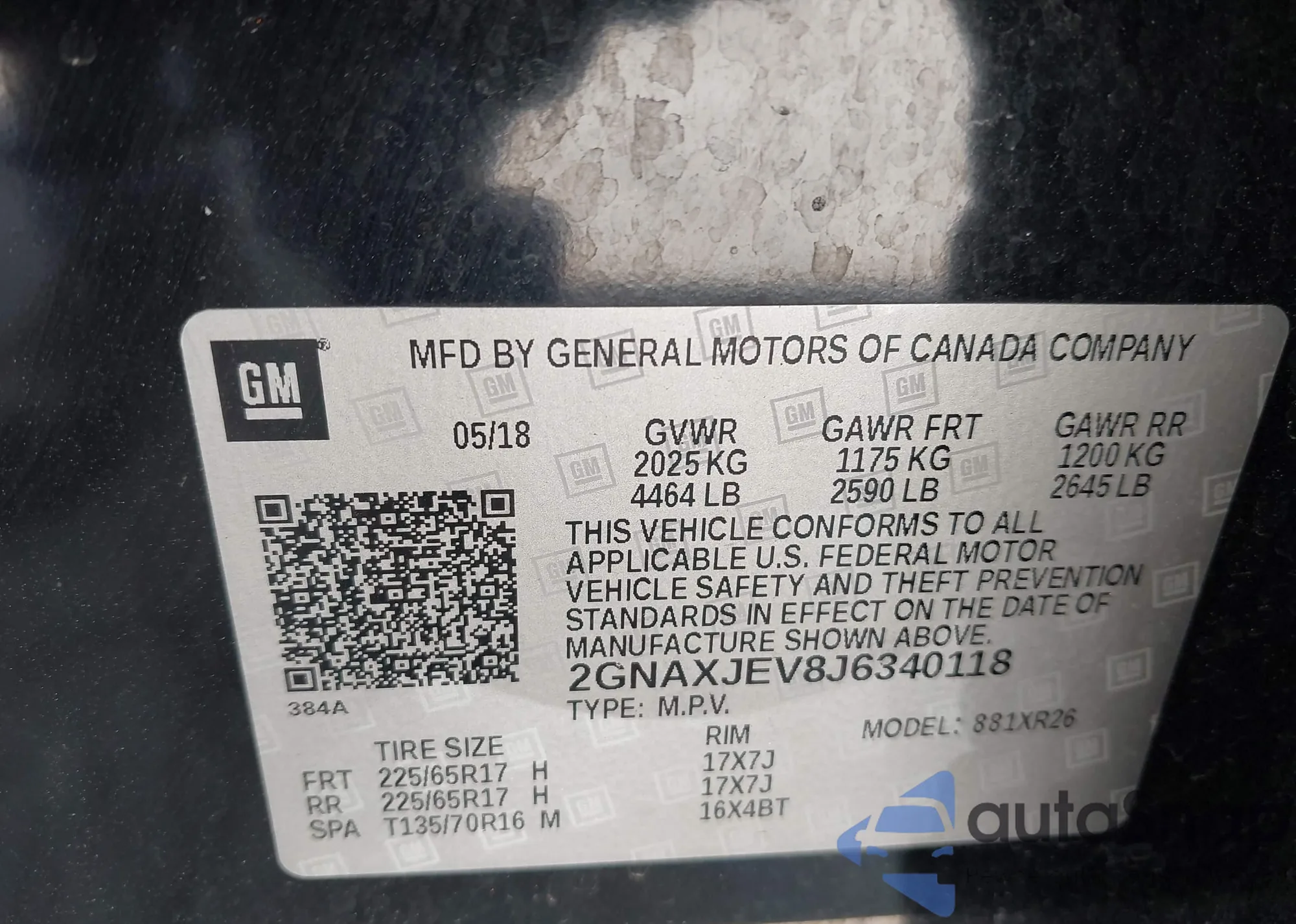 • VIN 2GNAXJEV8J6340118