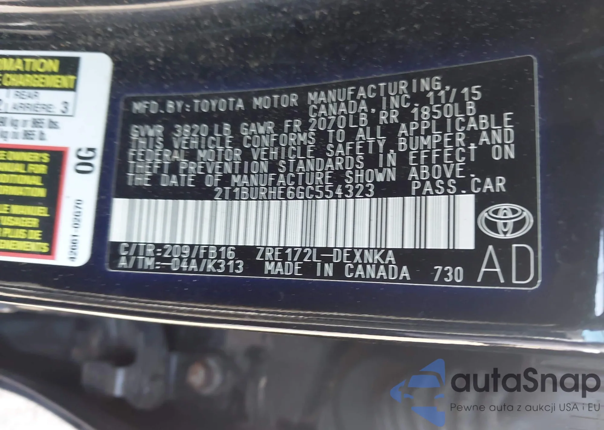 • VIN 2T1BURHE6GC554323