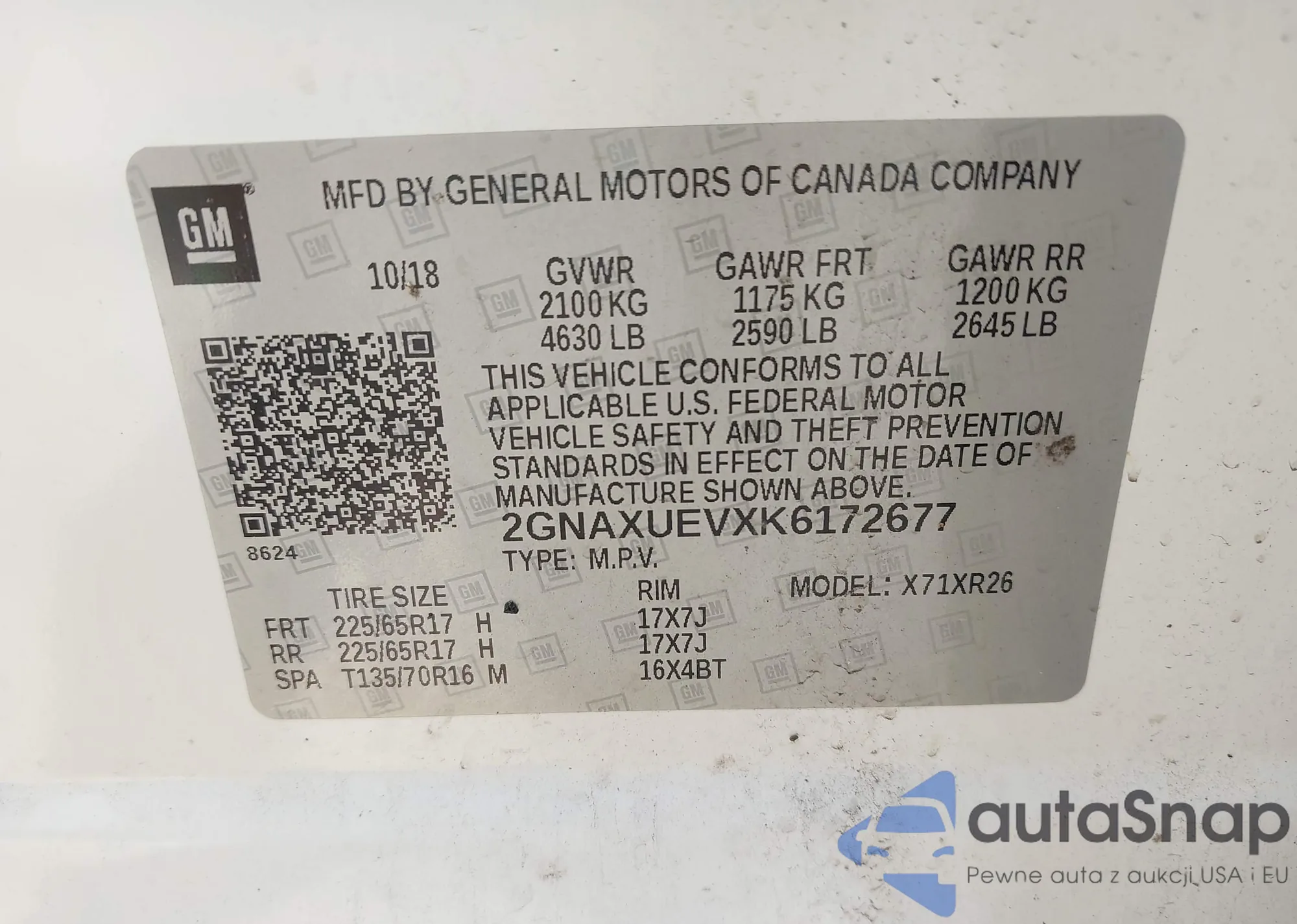 • VIN 2GNAXUEVXK6172677