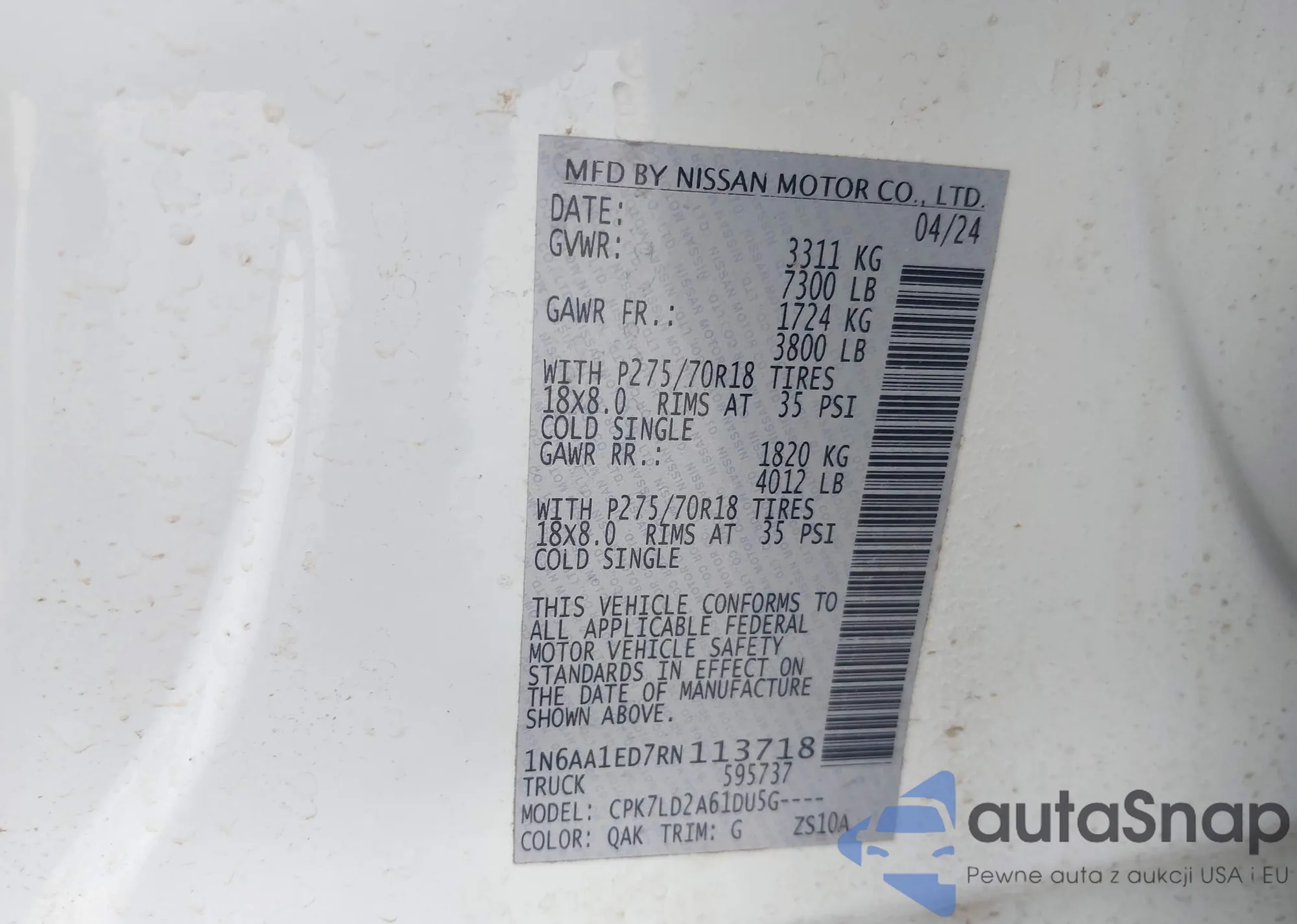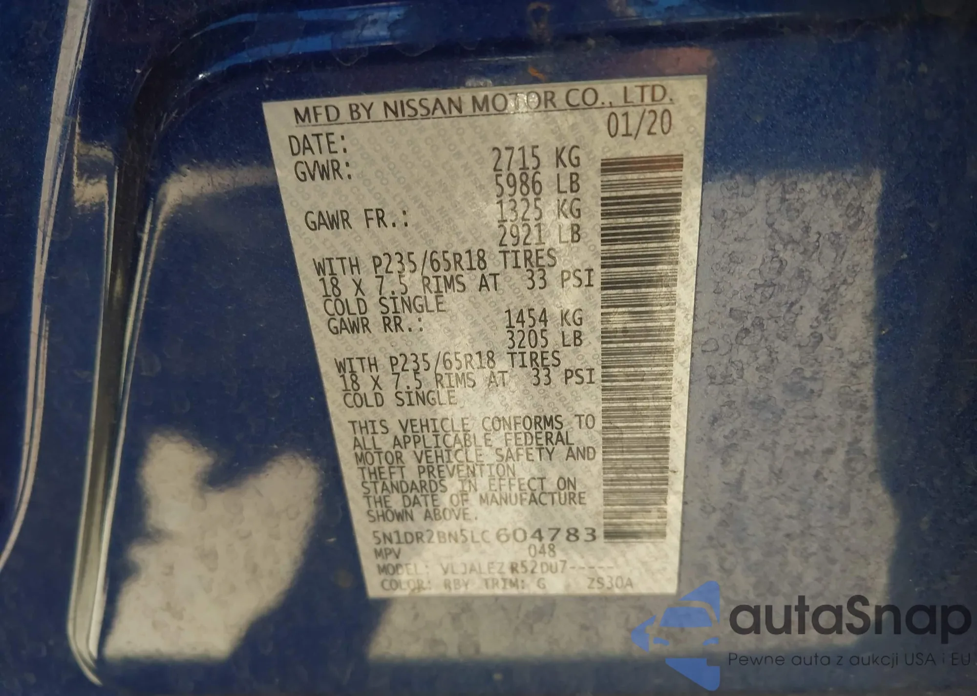 LOT: 43094467 VIN: JN8AF0BE7SM464947