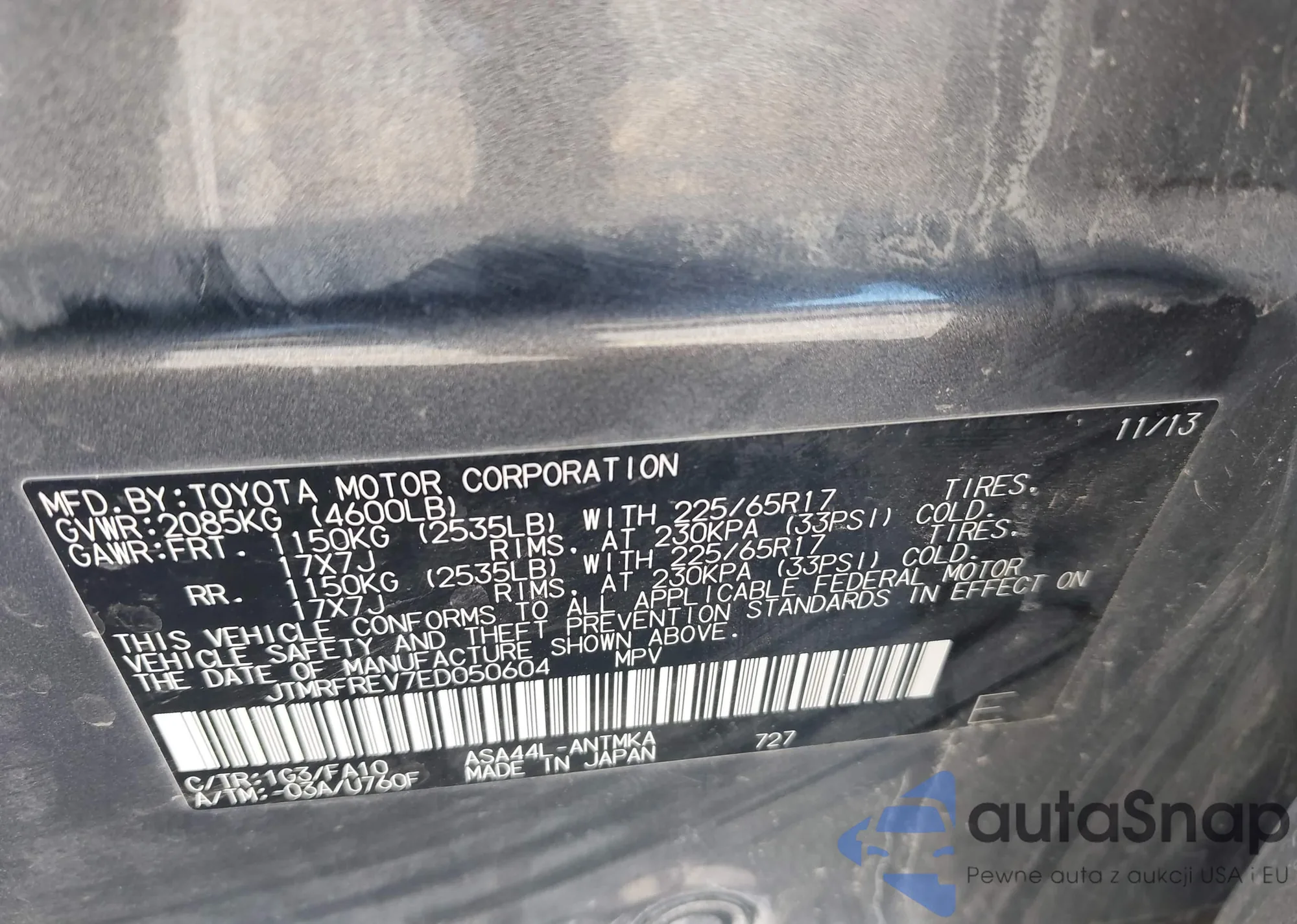 • VIN JTMRFREV7ED050604