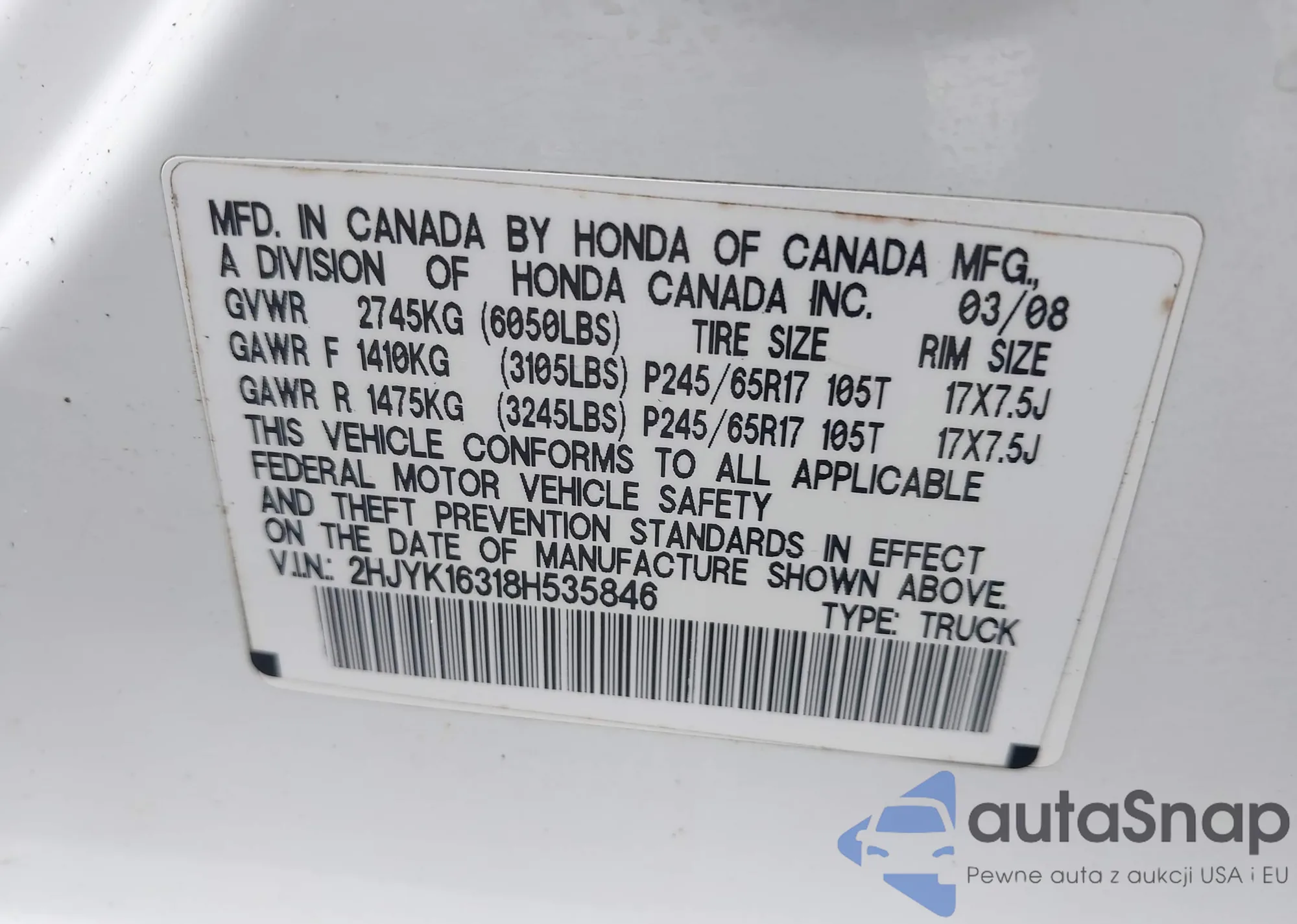 • VIN 2HJYK16318H535846