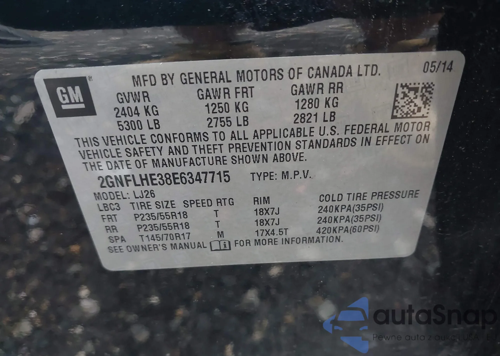 • VIN 2GNFLHE38E6347715