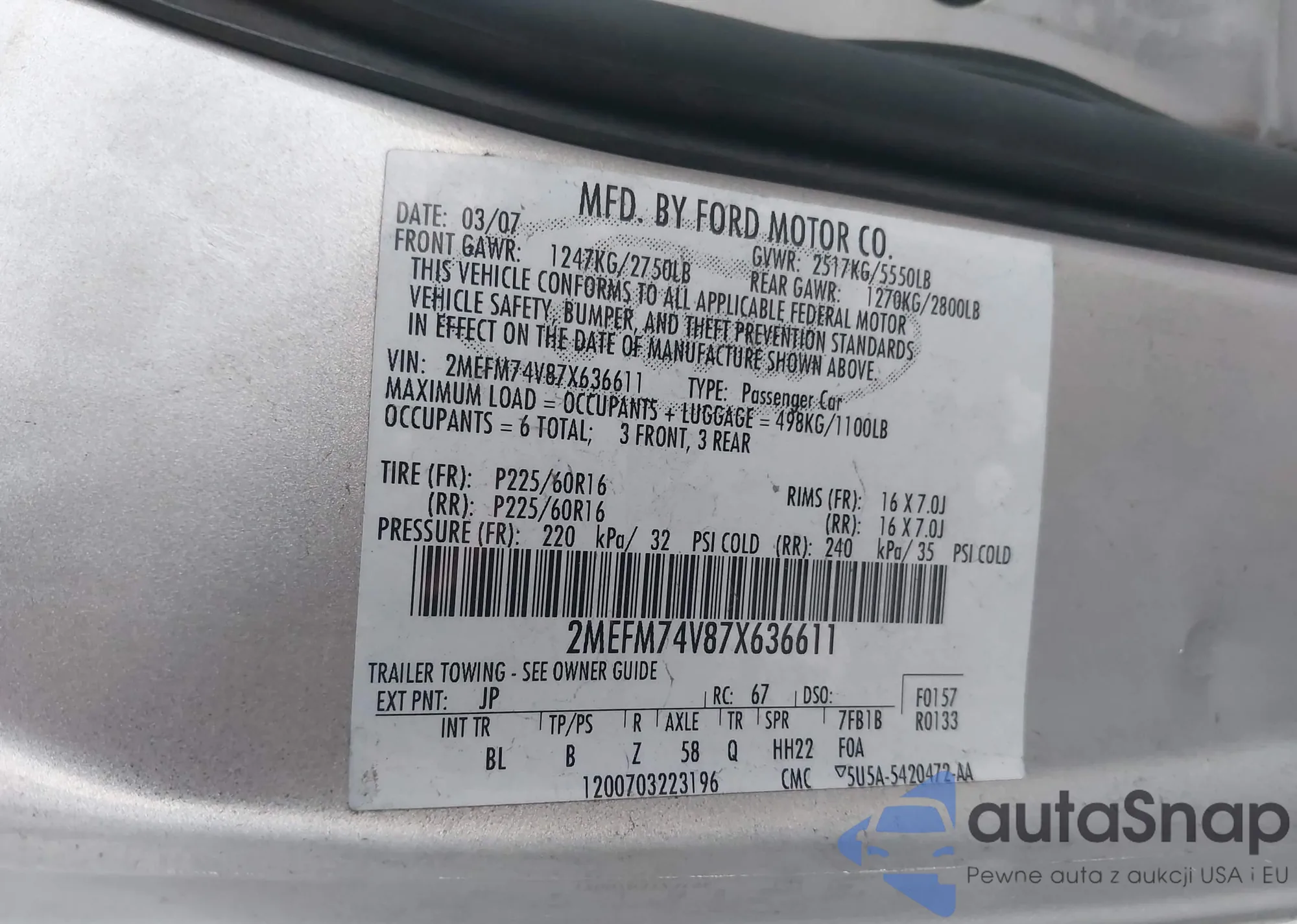 LOT: 42952991 VIN: 1FTRX17203NA45592