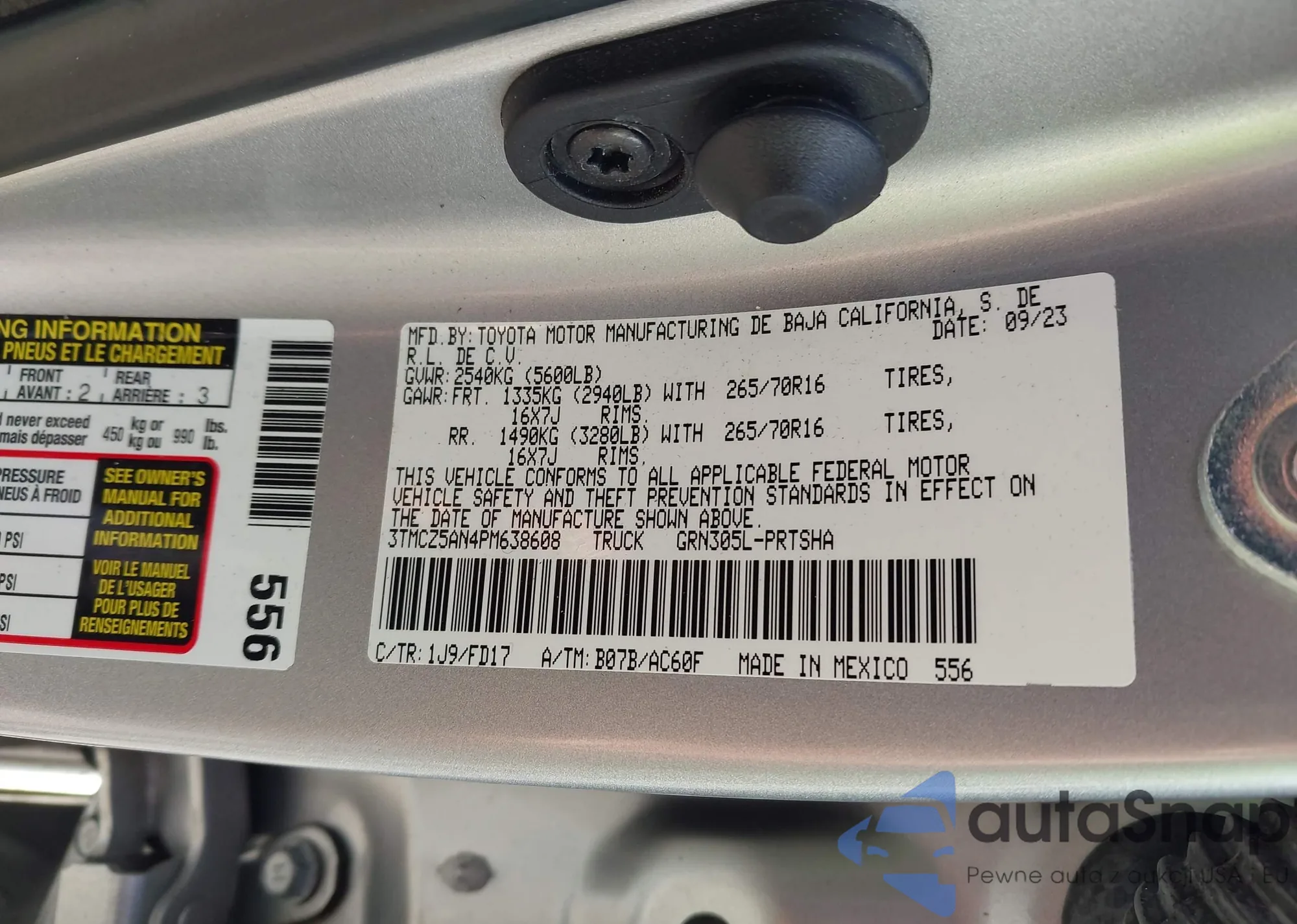 • VIN 3TMCZ5AN4PM638608