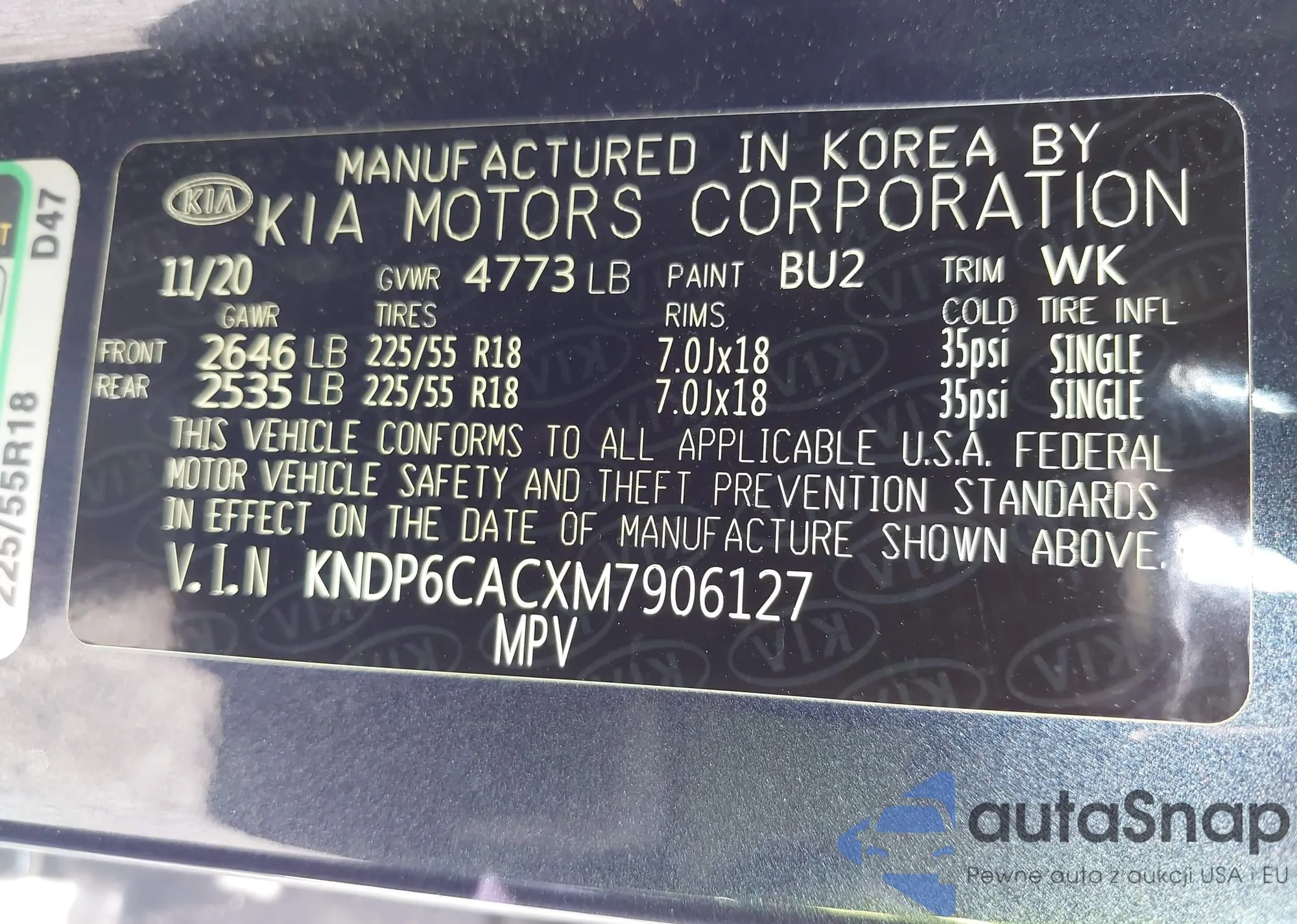 • VIN KNDP6CACXM7906127
