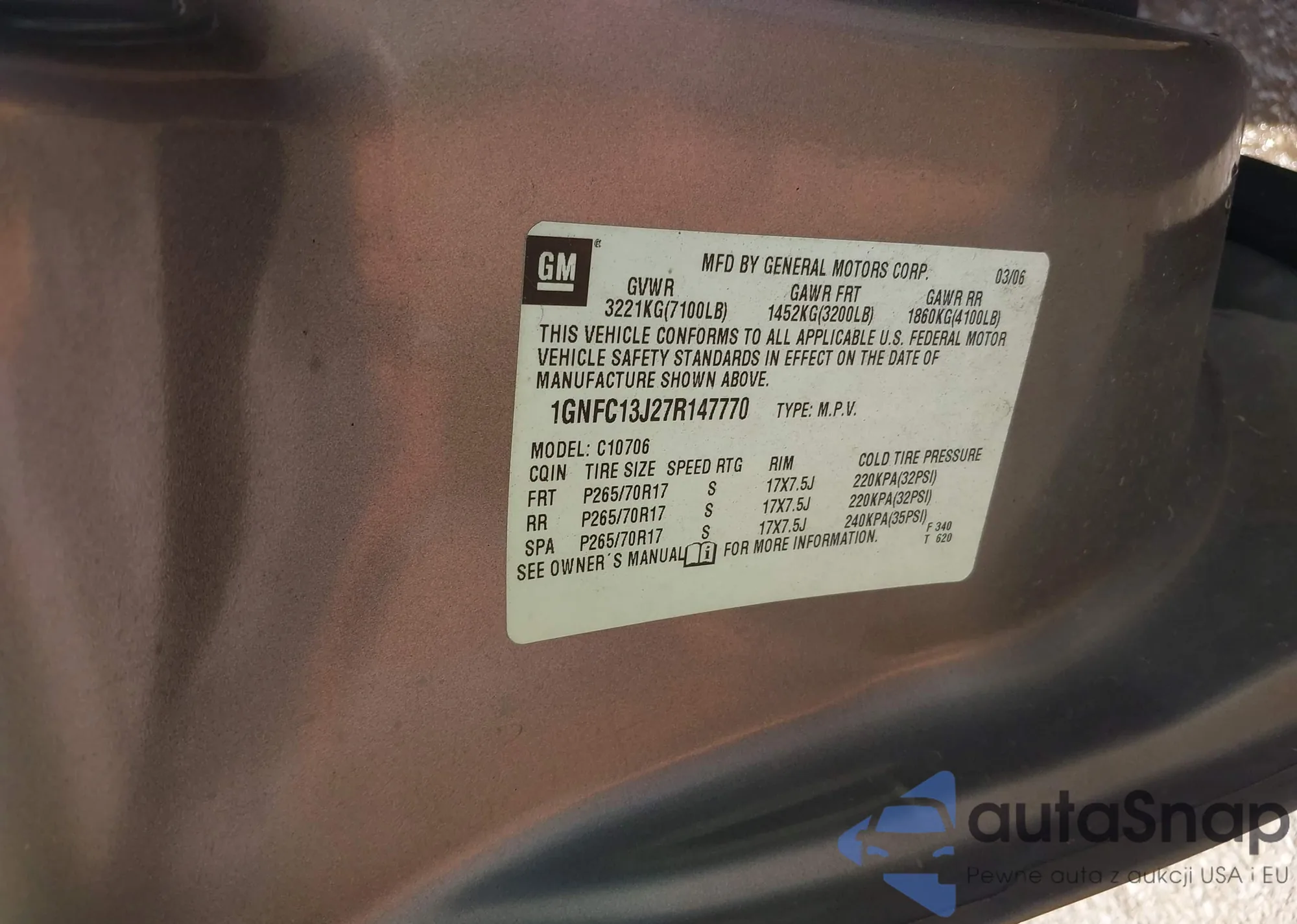 • VIN 1GNFC13J27R147770