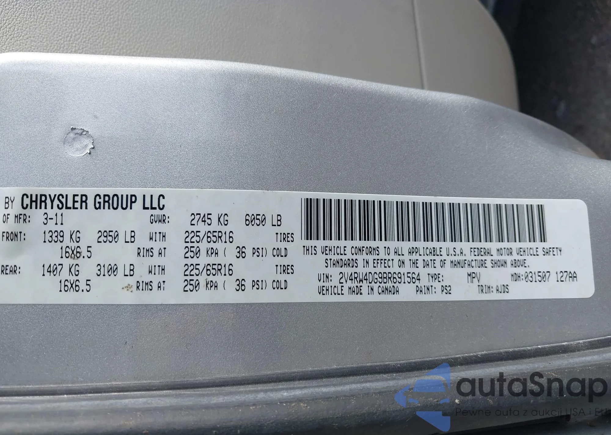 • VIN 2C3CDXBG7PH607883